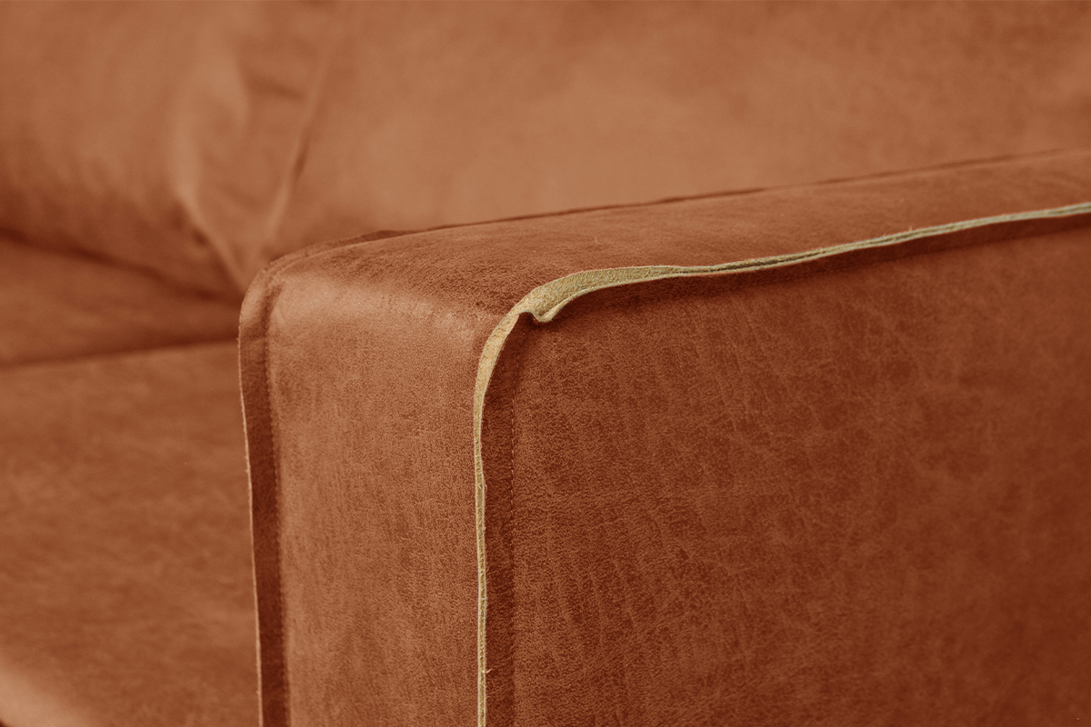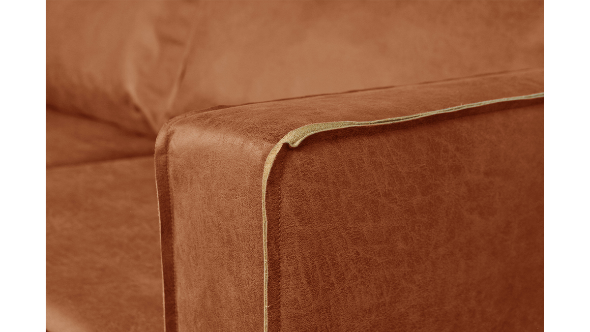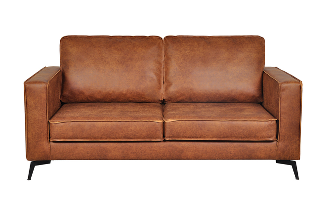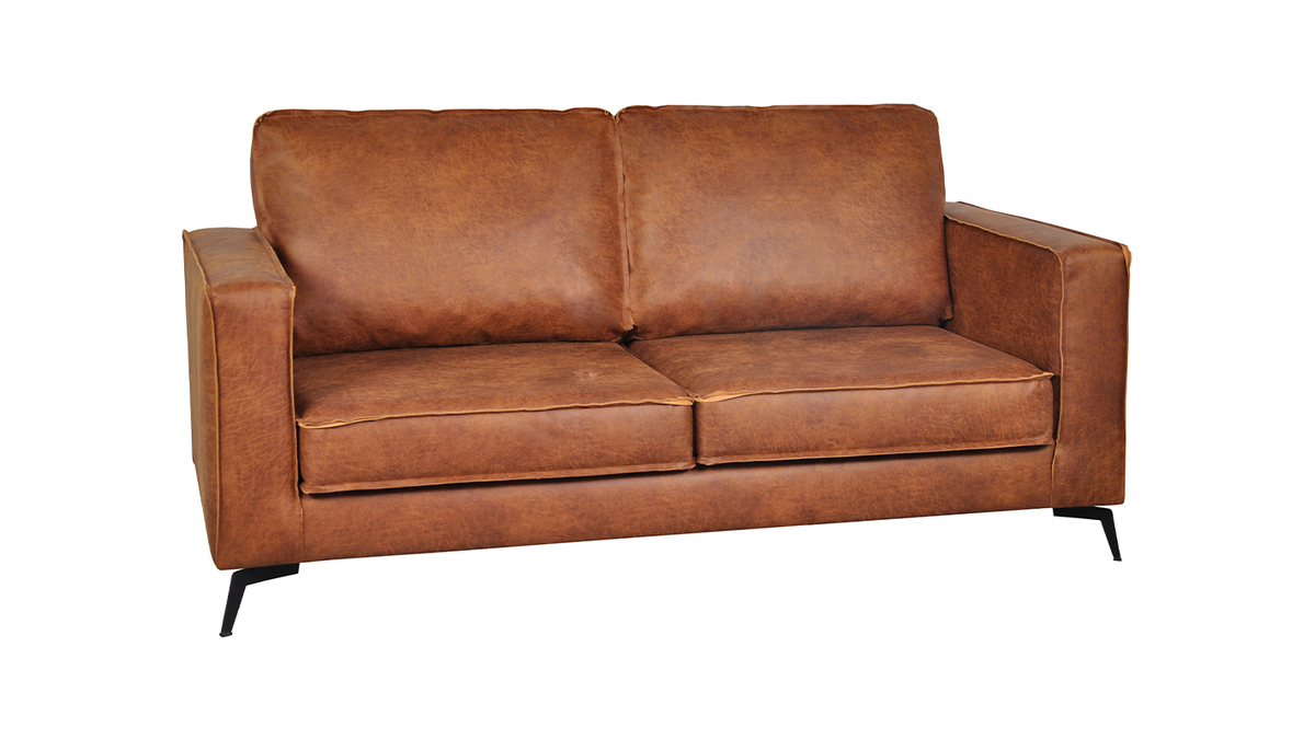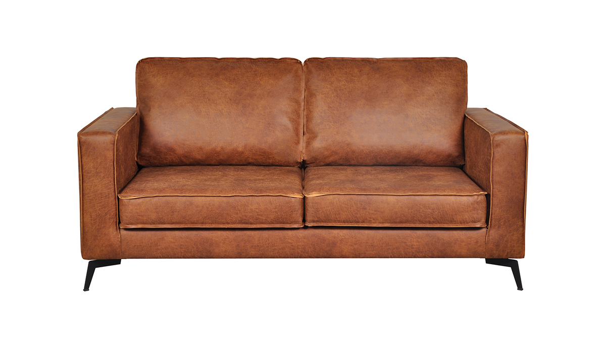 Tout le charme du canapé SONNY réside dans son revêtement en cuir de vache reconstitué à l'aspect vieilli, faussement usé. Donnant cette impression d'avoir été patiné par le temps, ce canapé marron cognac est une belle pièce de caractère qui fera toute la différence dans votre salon. Pour parfaire son look authentique, ce canapé vintage repose sur des pieds en métal noir.