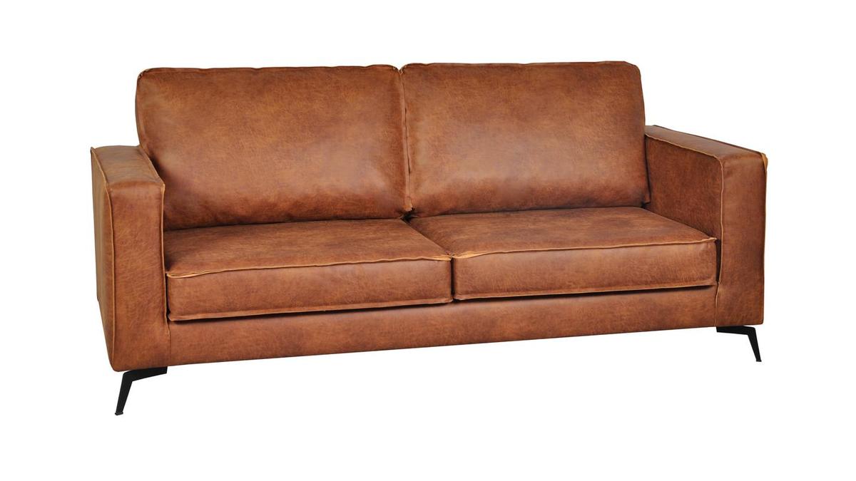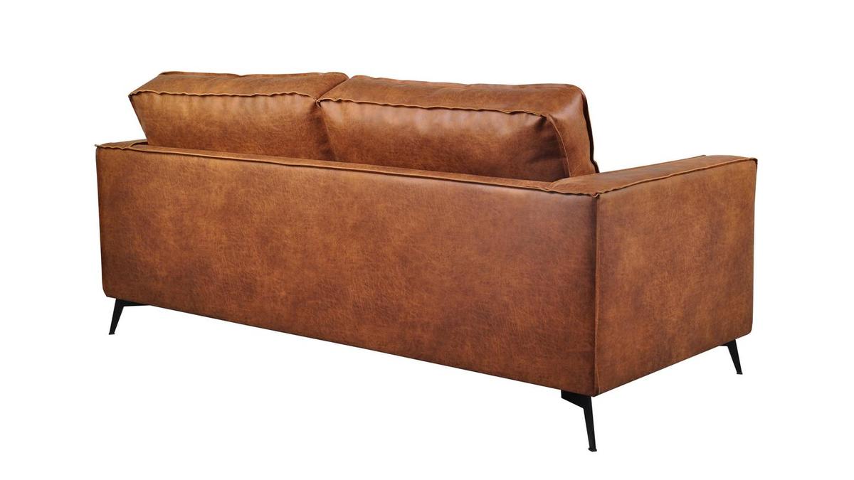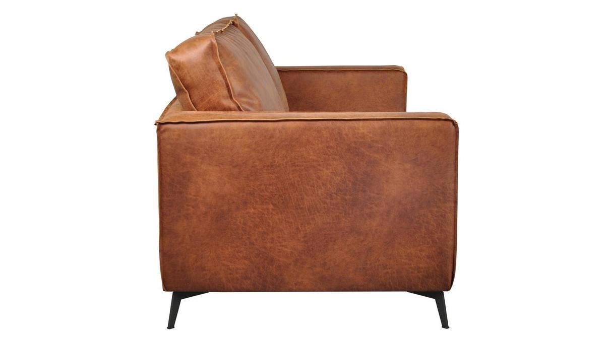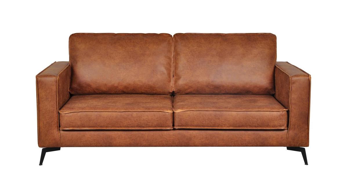 Canapé vintage 3 places cuir marron cognac aspect vieilli et métal noir SONNY
