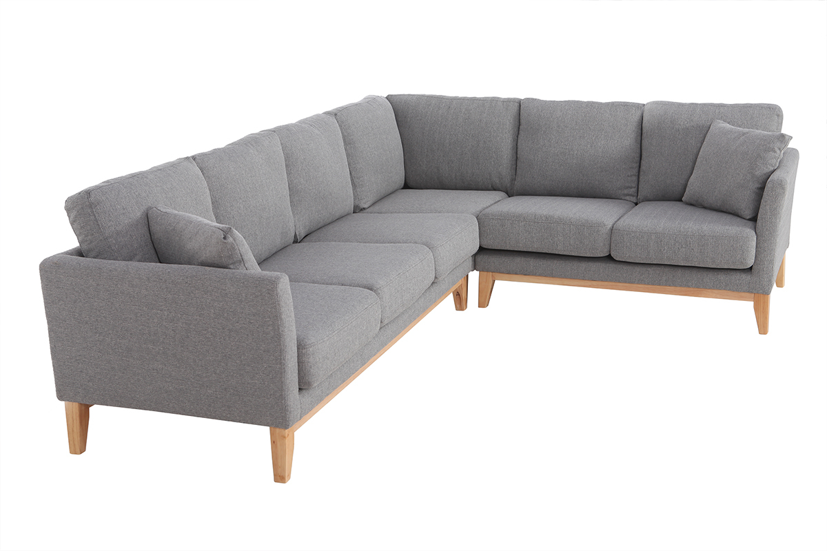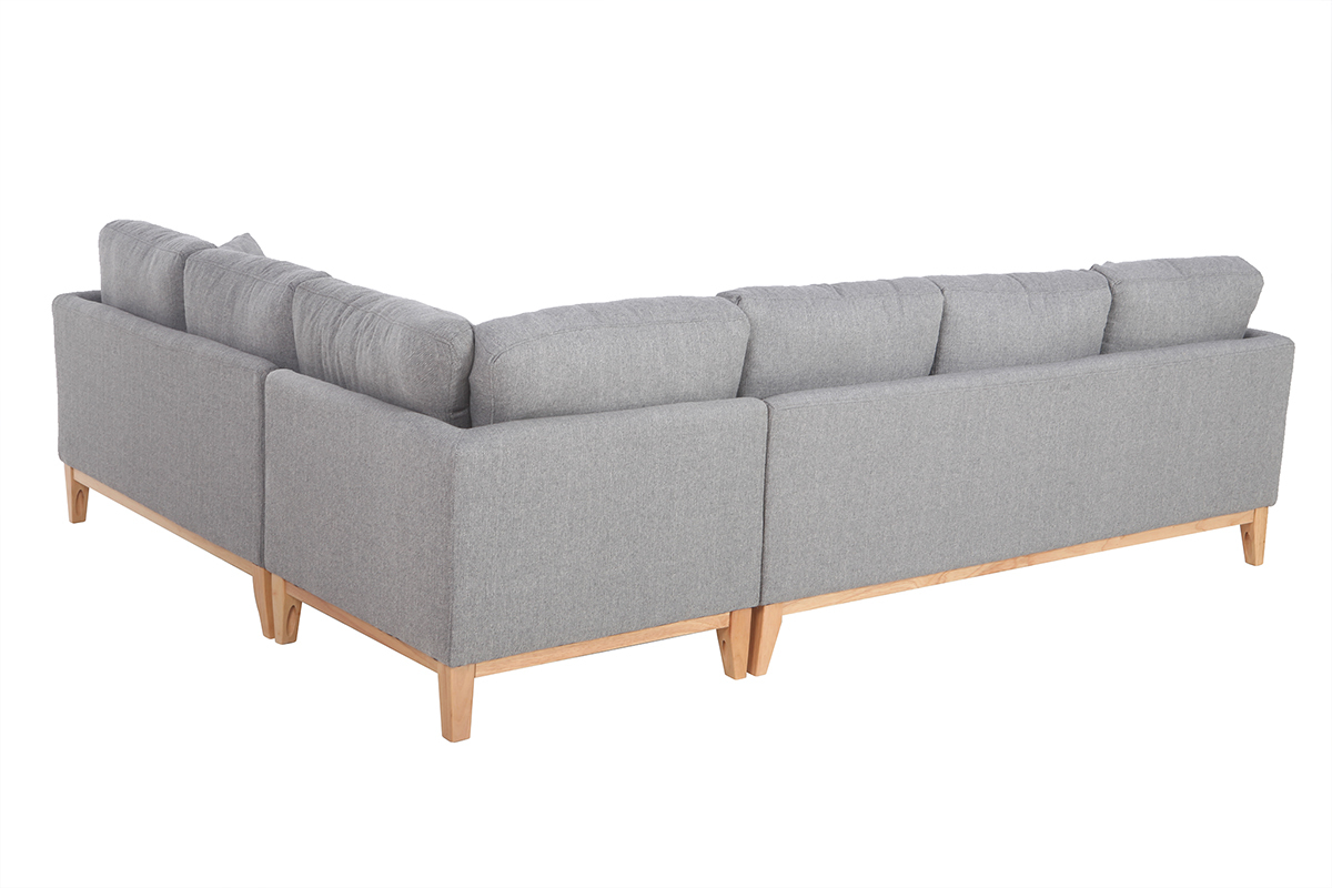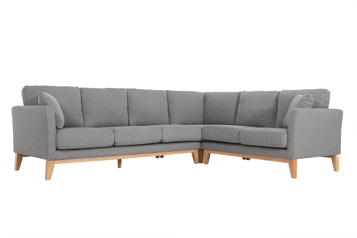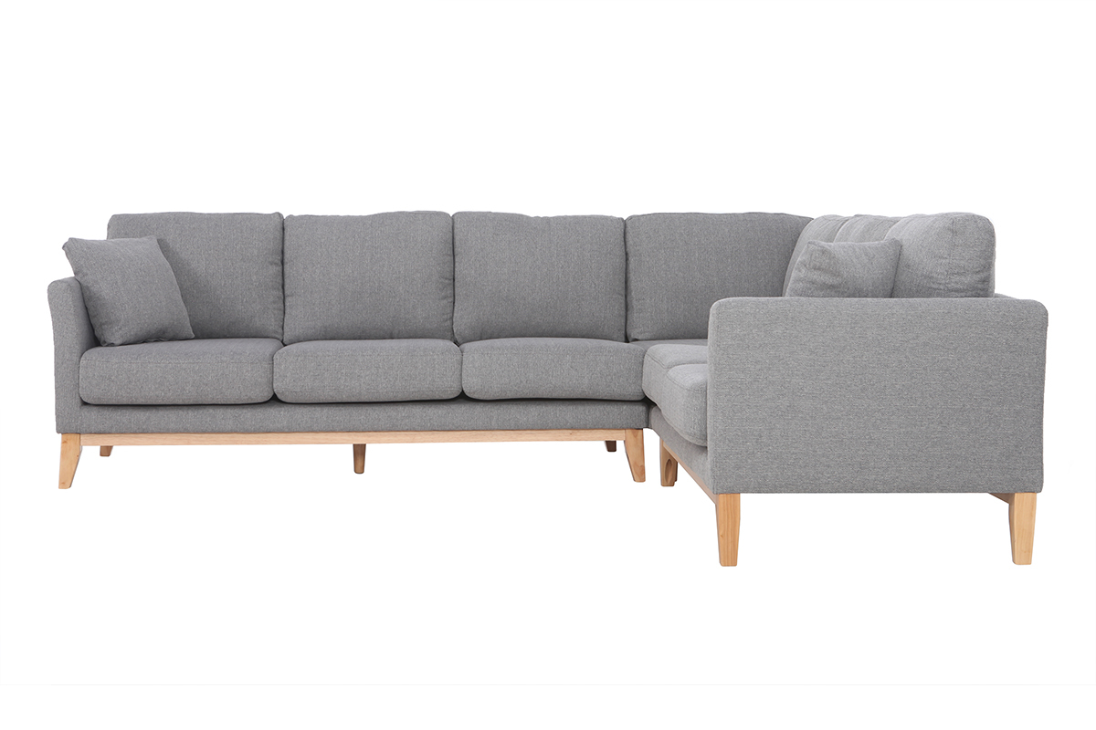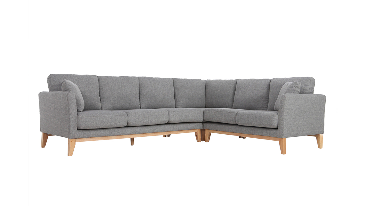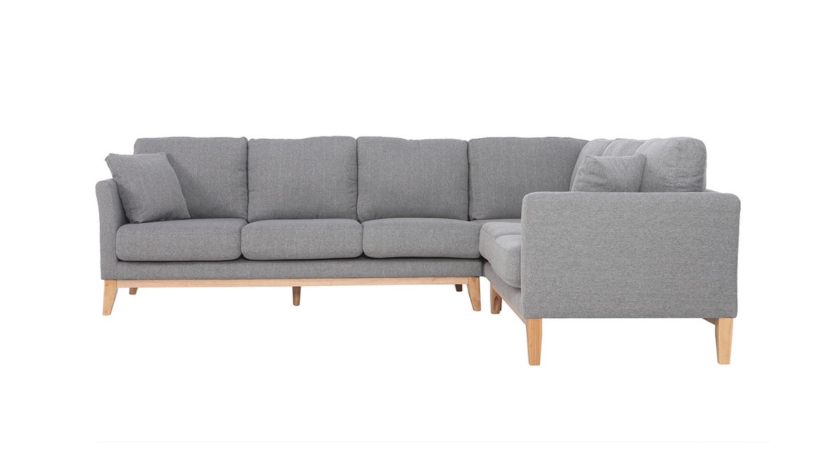 Soutenu par un solide piètement en bois clair (hévéa massif) et habillé d'un revêtement en tissu gris clair (100% polyester), OSLO séduit ses hôtes à l'oeil comme au toucher. Inspiré du design scandinave, avec ses lignes épurées et sa silhouette d'une élégante simplicité, ce canapé d'angle 5-6 places en tissu gris clair et bois massif apportera une belle dose de naturel aux intérieurs chaleureux et dans l'air du temps.