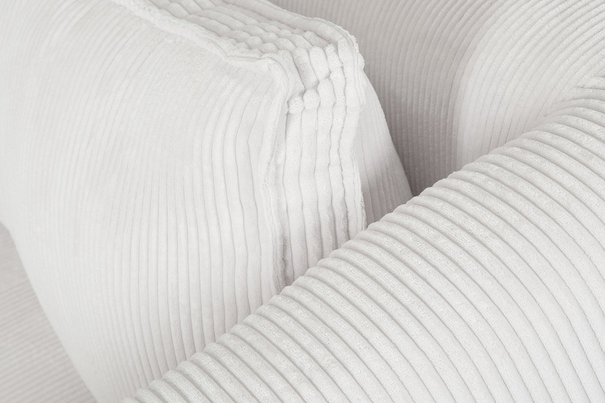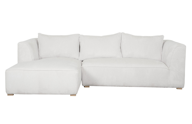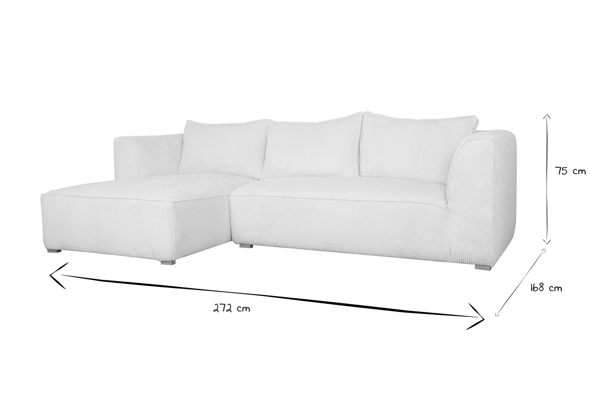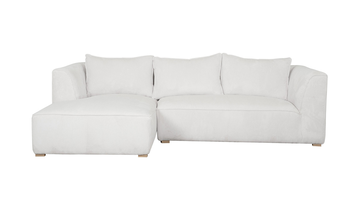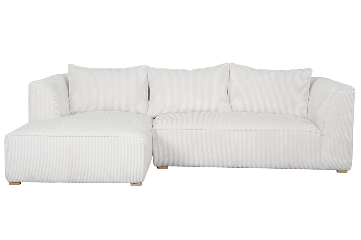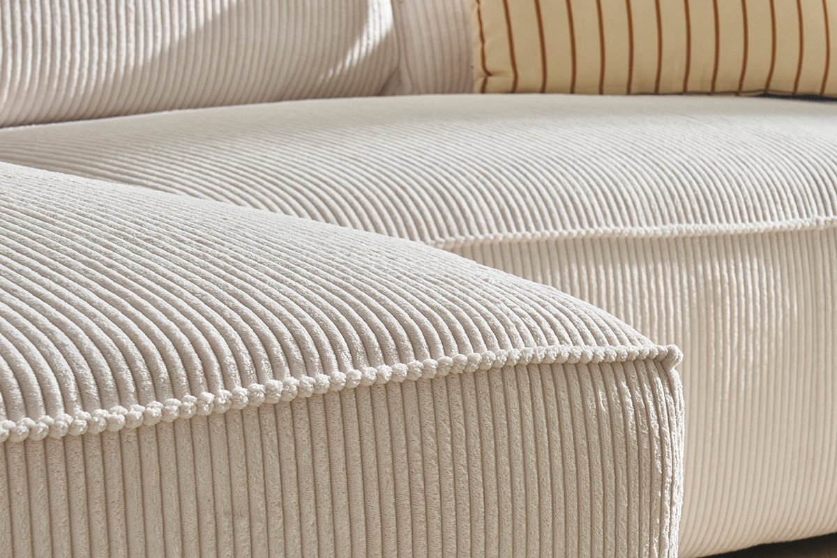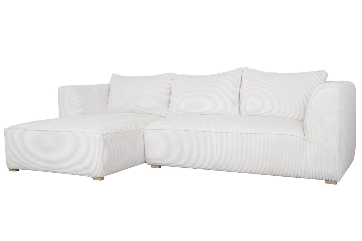 Canapé d'angle gauche design en tissu velours côtelé blanc cassé écru livré prêt à assembler.