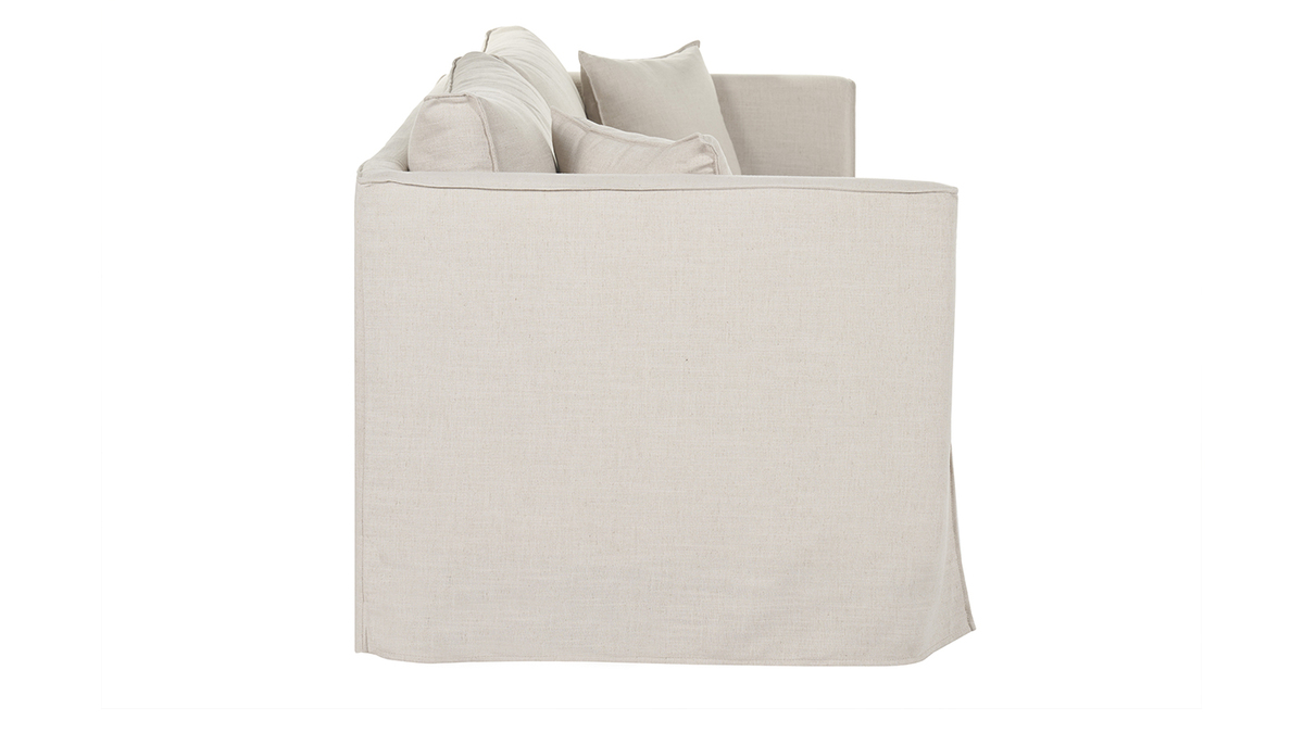 Pour faciliter son entretien, ce canapé beige est facilement déhoussable.