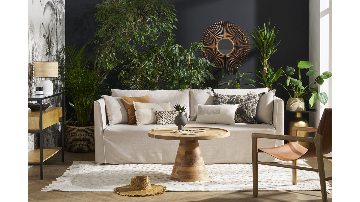 Canapé classique dans un séjour à l'allure raffinée, ou canapé bohème-chic accompagné d'une table basse en manguier, ADELE offre tout un monde de possibilités !