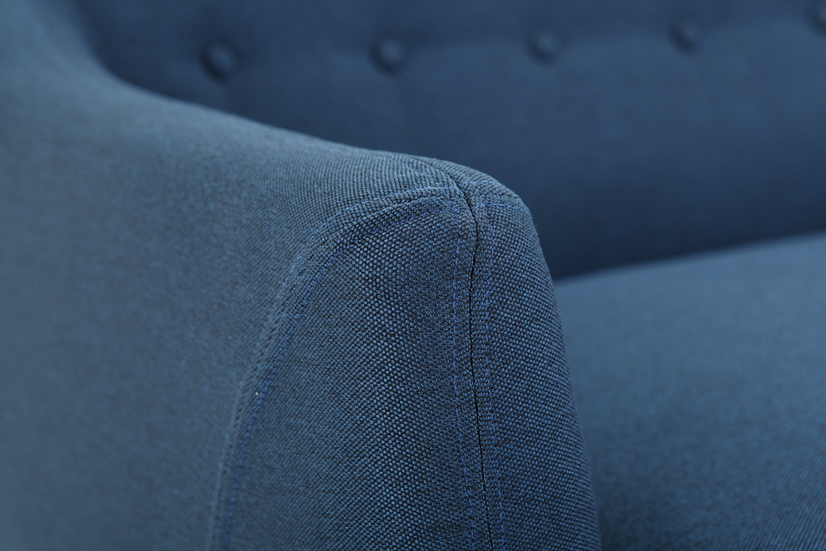 Sa forme franche et précise ainsi que son dossier capitonné associé à une finition en tissu et des pieds en noyer offrent une complémentarité parfaite. Inspiration des années 50 et finitions du style nordique, l'association de ces deux univers donne un rendu très atypique et parfaitement harmonieux.