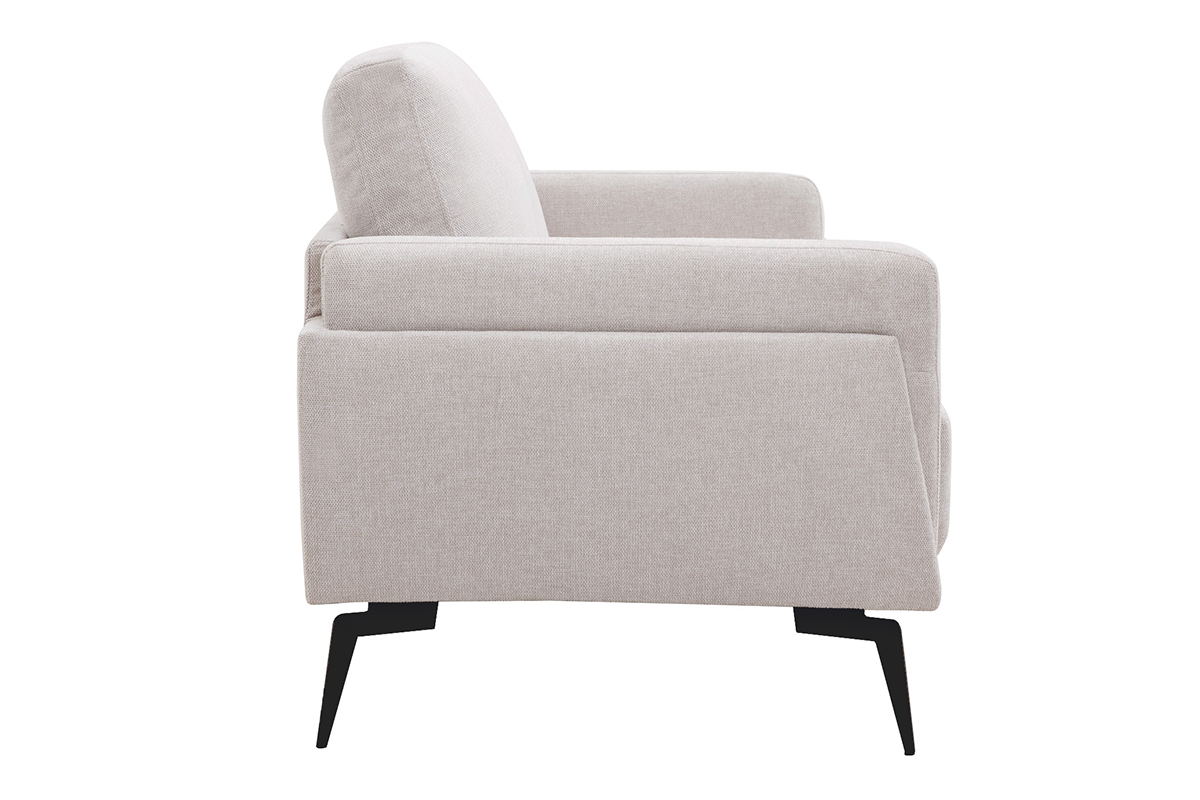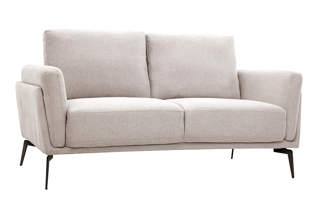 Ce canapé design aux lignes essentielles mixe des pieds fins en métal noir (H17 cm) à un élégant tissu effet velours texturé beige (100% polyester). Cette couleur lumineuse et naturellement chaleureuse s'accorde facilement avec tous les styles de décoration.