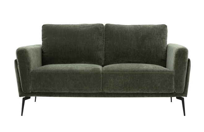 Ce canapé design aux lignes essentielles mixe des pieds fins en métal noir (H17 cm) à un élégant tissu effet velours vert kaki (100% polyester). Cette couleur lumineuse et naturellement chaleureuse s'accorde facilement avec tous les styles de décoration.