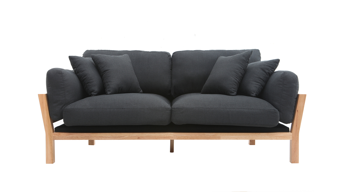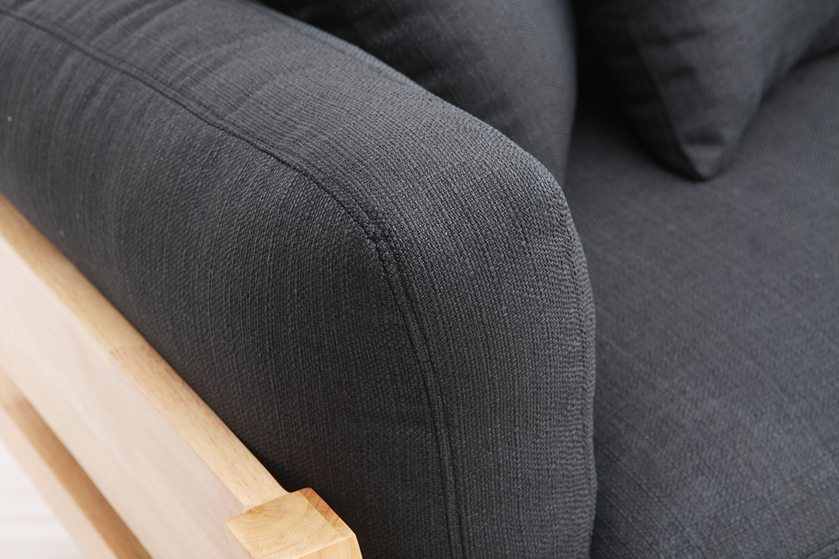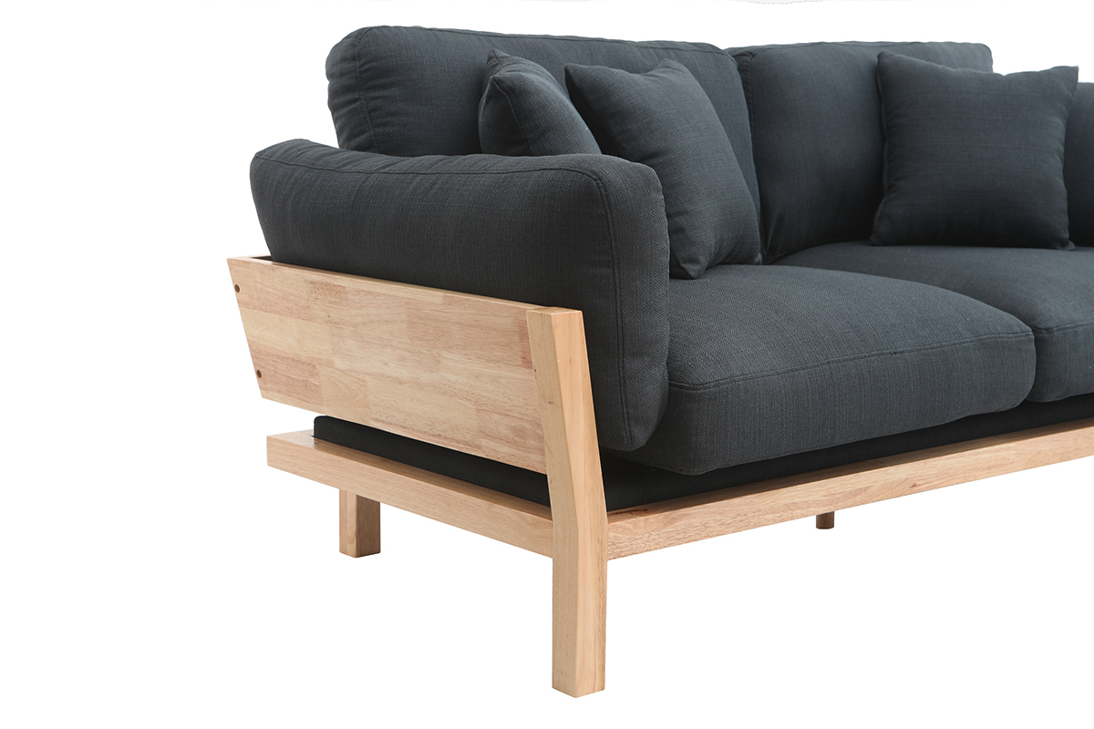 À la fois fonctionnel et esthétique, le canapé KYO possède tous les fondamentaux du style nordique : couleurs, matières, design épure et fonctionnalité. Ce canapé en bois et tissu en impose par sa structure originale en hévéa massif. Un soubassement robuste qui contraste avec le revêtement gris anthracite (100% polyester). De quoi apporter du caractère à votre intérieur ! Ce canapé 3 places gris foncé se mariera parfaitement avec un séjour aux notes colorées ou plus neutres, scandinave, bohème ou contemporain, mais toujours dans une atmosphère chaleureuse et cosy.