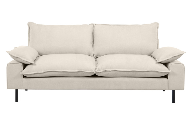 Chic et minimaliste, ce canapé moderne 3 places dégage une allure unique. Sa couleur beige - à la fois lumineuse et cosy - lui vaut son style raffiné, capable de donner beaucoup de caractère à n'importe quel intérieur. La beauté du tissu effet velours, aussi doux au regard qu'au toucher, est mise en valeur par des lignes rebondies et la sobriété des pieds en métal noir. Un sans-faute !