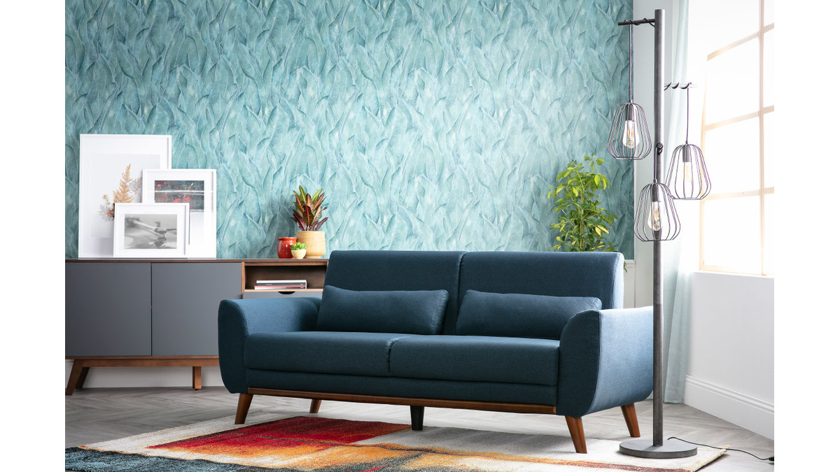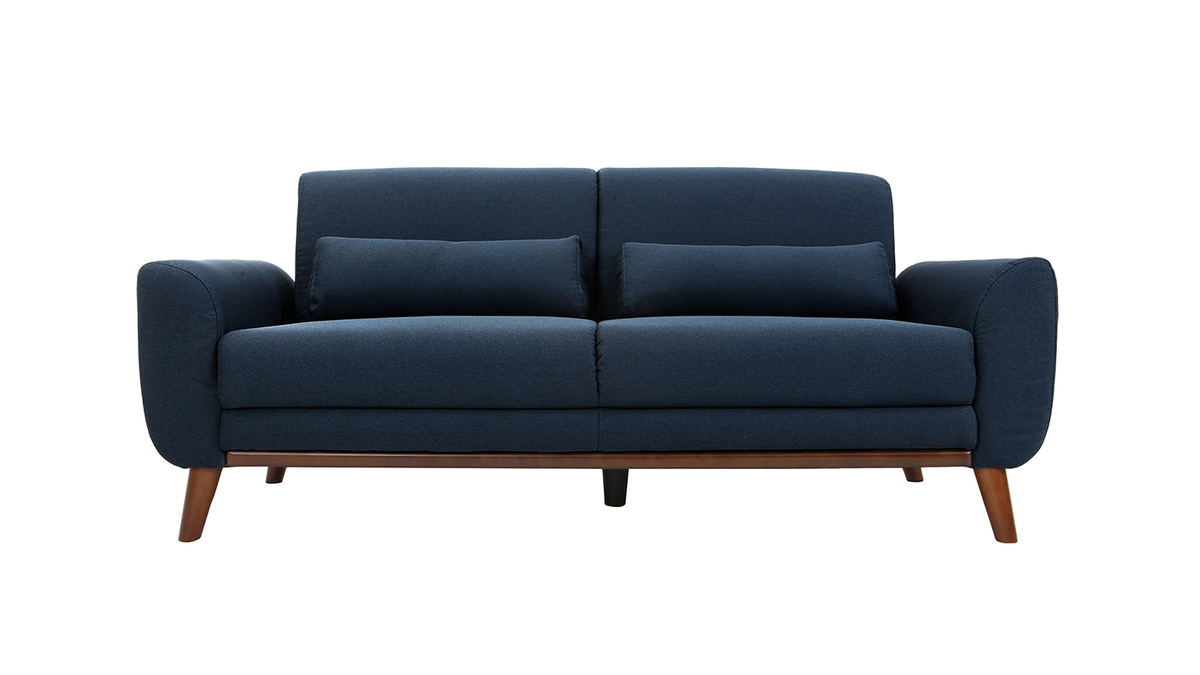 Composé d'une assise en tissu bleu et d'un piètement hévéa massif teinté noyer, ce canapé est un concentré de style et de douceur. Le mélange réussi entre l'aspect chaleureux du bois et l'élégance d'un revêtement en tissu fait de ce canapé 3 places un bel objet déco qui trouvera facilement sa place dans un salon vintage ou un séjour d'inspiration nordique.