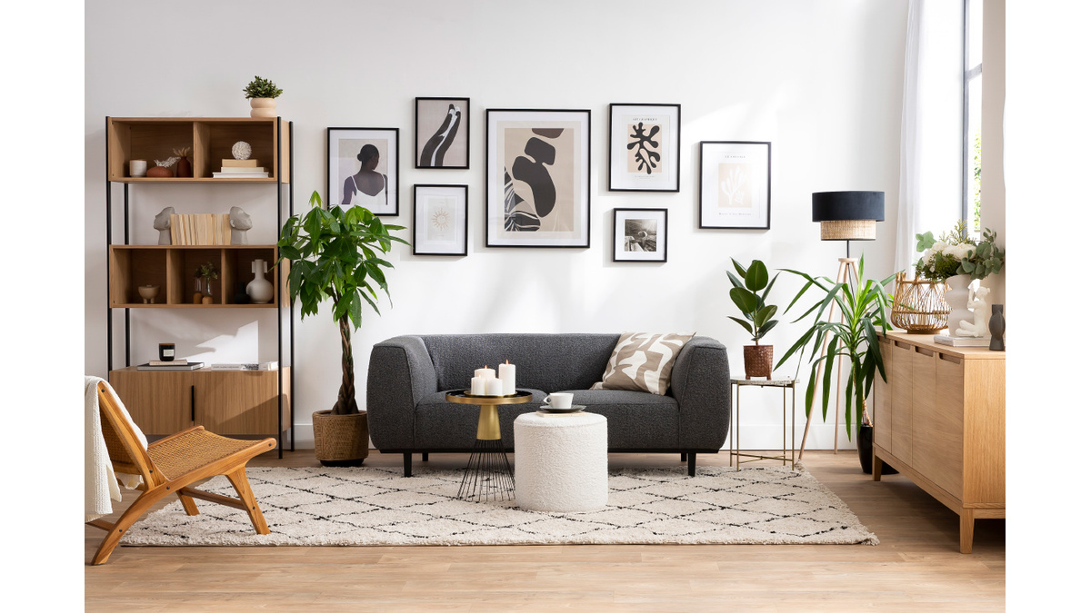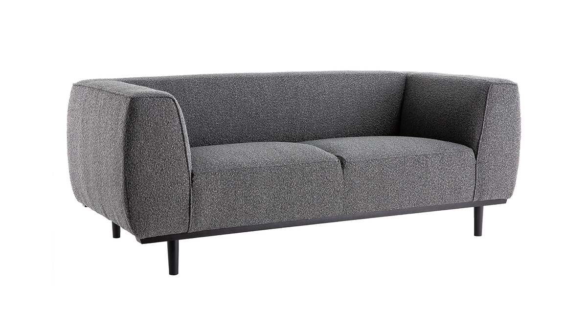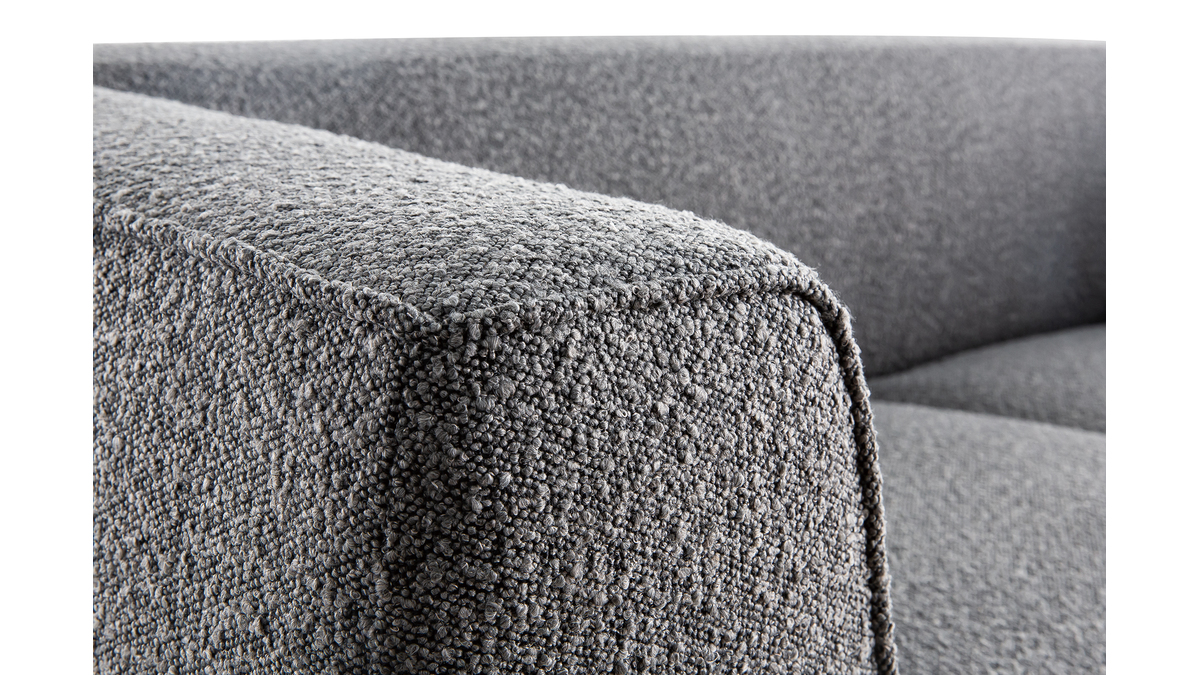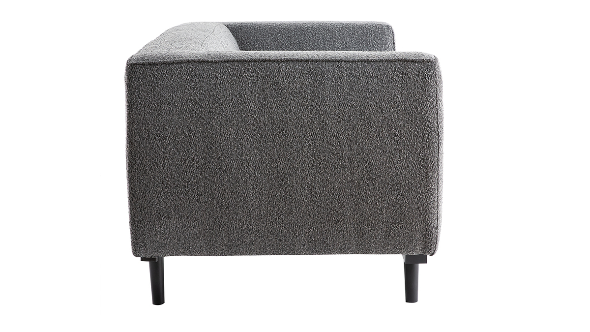 Le canapé 2-3 places MORRIS affiche un look scandinave revisité, une silhouette affirmée qui oscille entre des lignes rigoureuses et rebondies. On aime son élégance subtilement décontractée et son joli revêtement effet laine bouclée gris anthracite (95% Polyester + 5% Acrylic) qui nous enveloppe de douceur. La structure noire en bois souligne les lignes essentielles du canapé tandis que les pieds assortis en hêtre massif apportent beaucoup de légèreté.