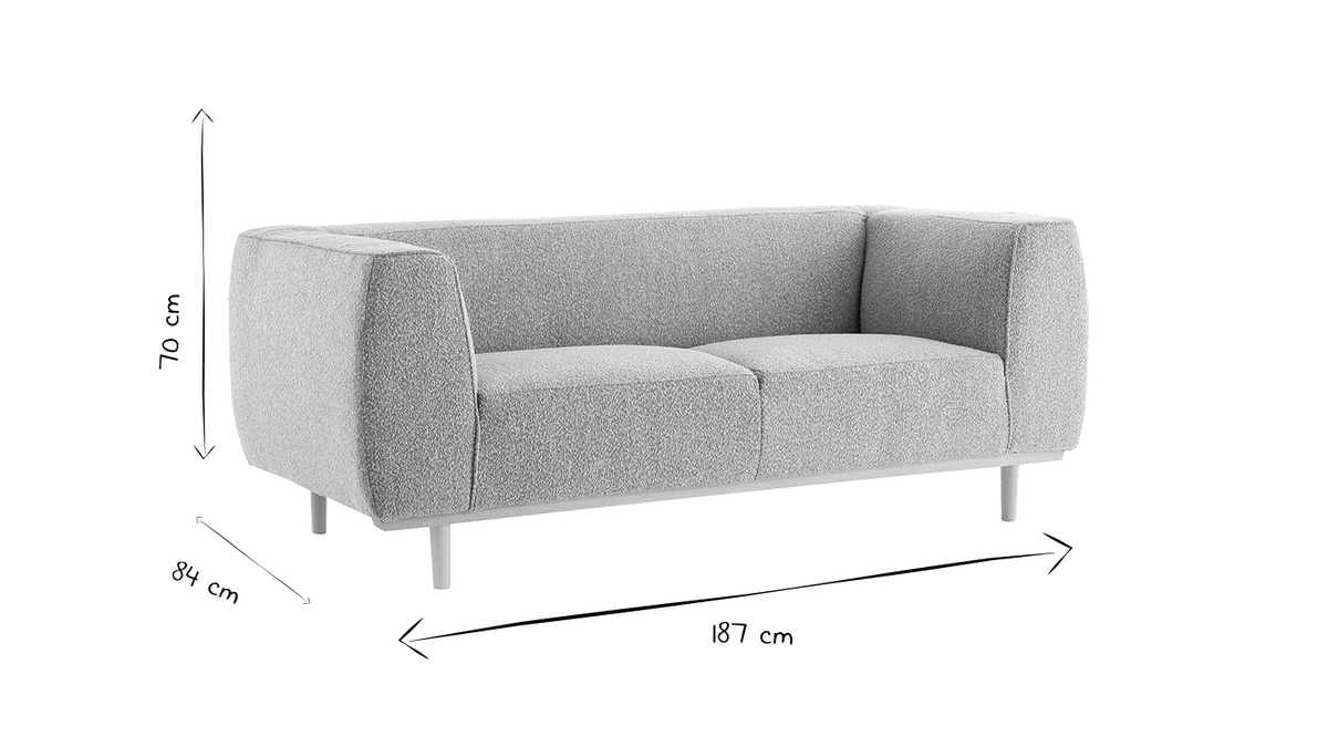 Allié des petits espaces, ce canapé contemporain (L187 X P84 X H70 cm) a été conçu pour s'adapter aux pièces de vie étroites sans pour autant rogner sur le bien-être. Pour un maximum de confort, les coussins d'assise possèdent un épais rembourrage qui mixe de la mousse polyuréthane HR (densité 30kg/m3) et de la ouate (densité 300 g/m2).