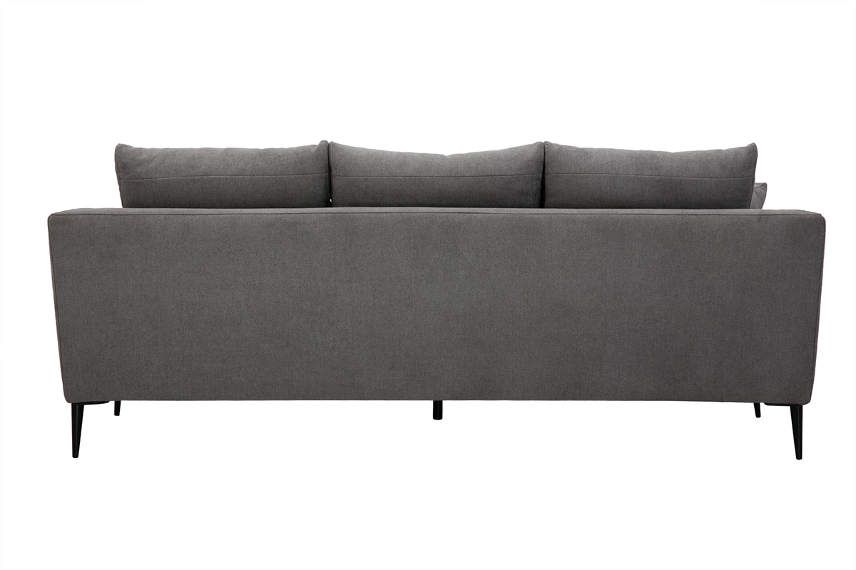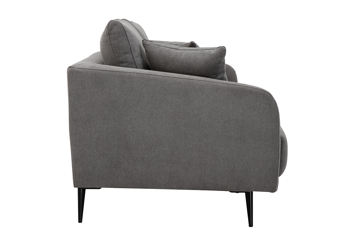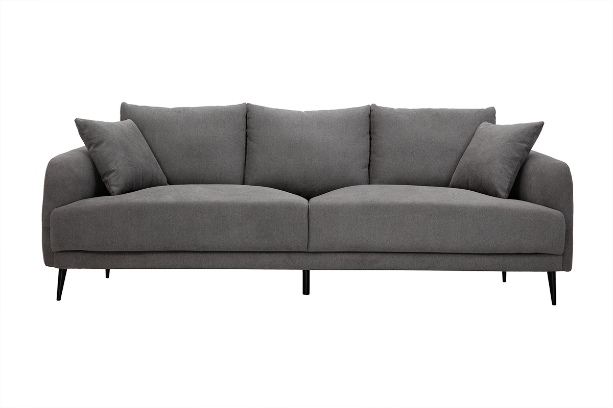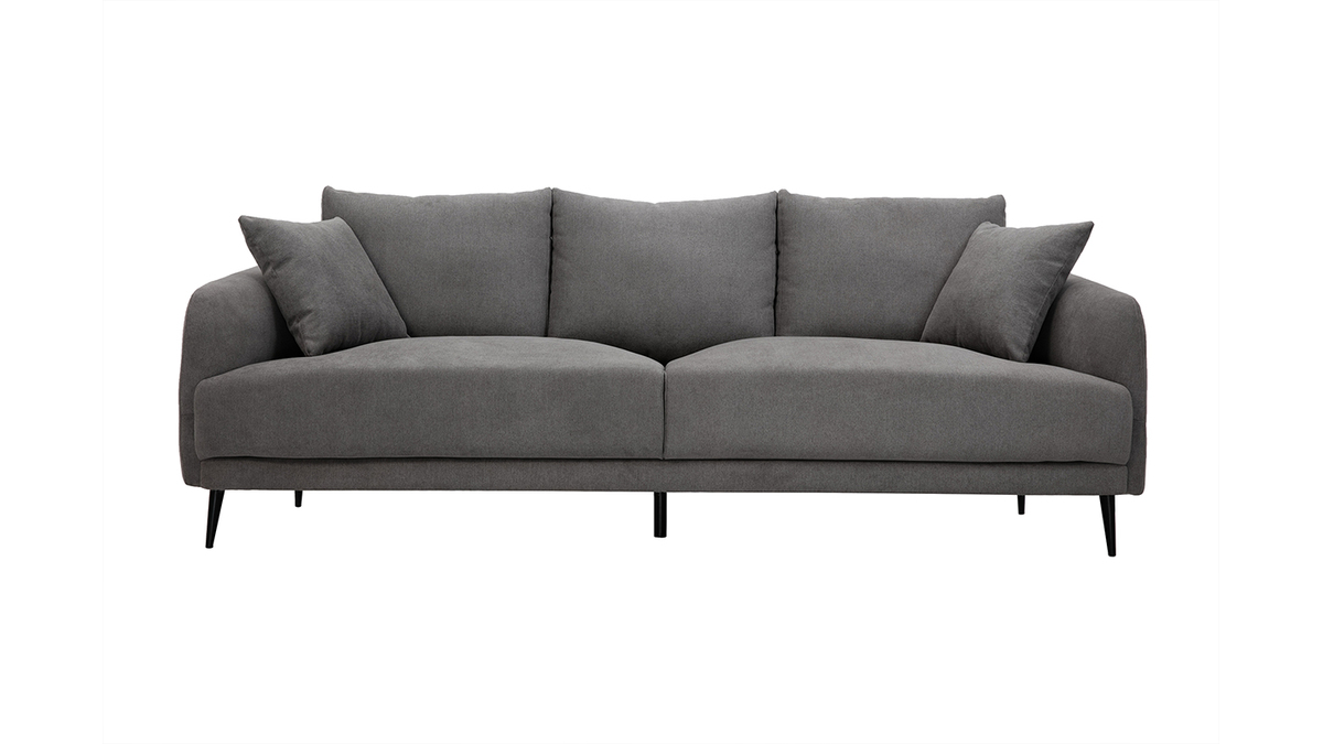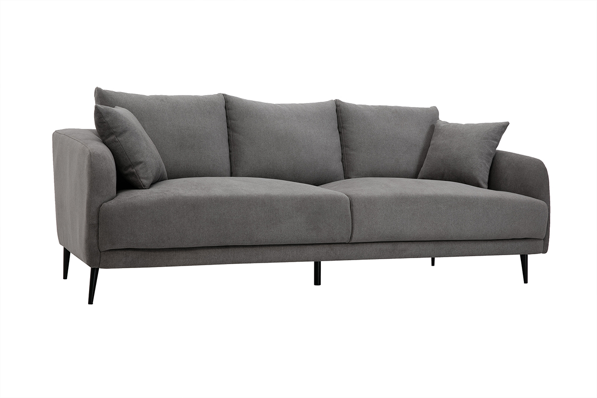 Le canapé 3 places JERRY promet de jolis moments de détente en famille. De l'assise ample généreusement garnie aux accoudoirs rebondis en passant par les coussins de dossier ultra moelleux, tout a été pensé pour vous offrir un maximum de confort. Vous apprécierez également la douceur du revêtement effet velours gris (tissu 100% polyester). Une enveloppe au toucher velouté qui habille avec élégance les épais coussins d'assise (densité 35 kg/m³). Les quatre jolis pieds fuselés en métal noir apportent beaucoup de légèreté à l'ensemble.