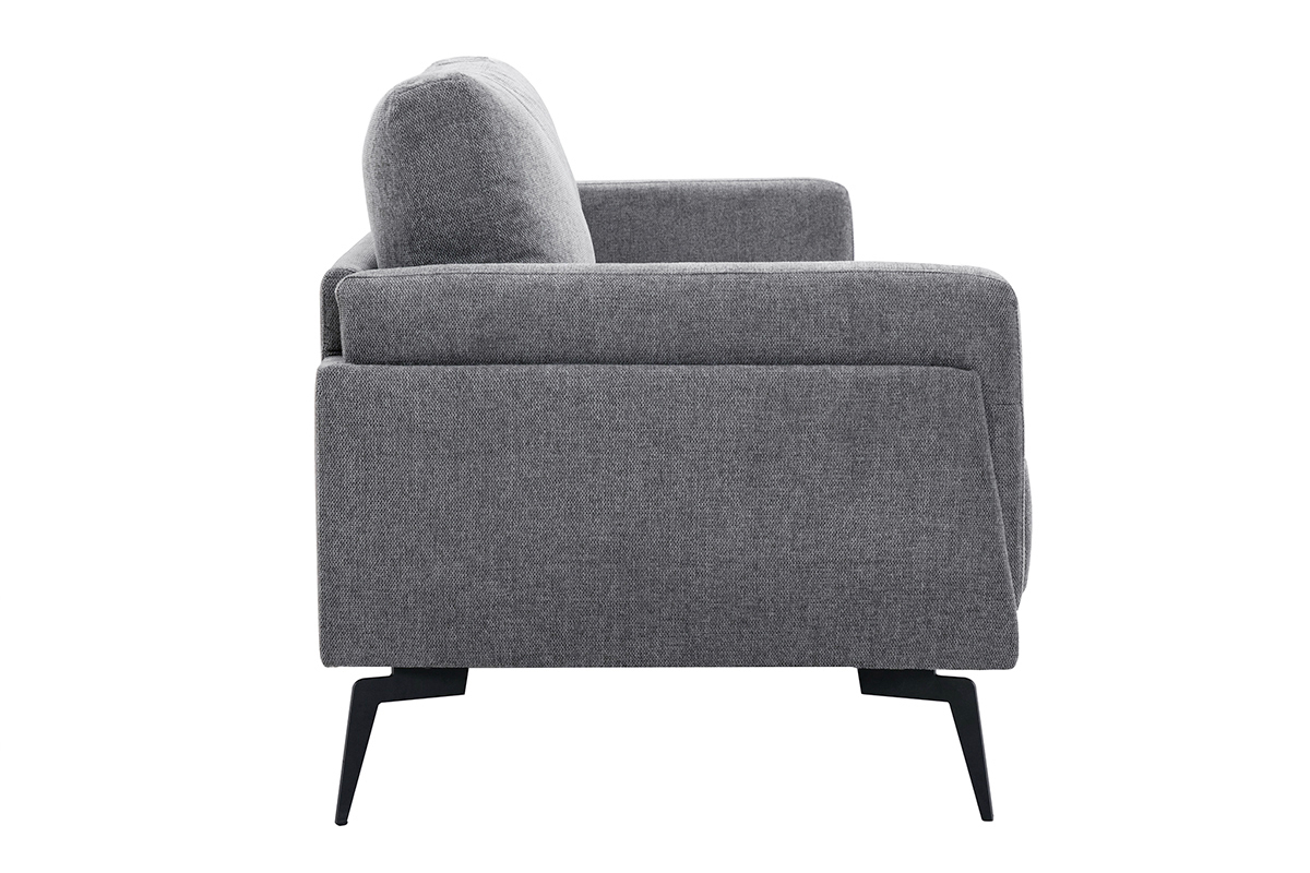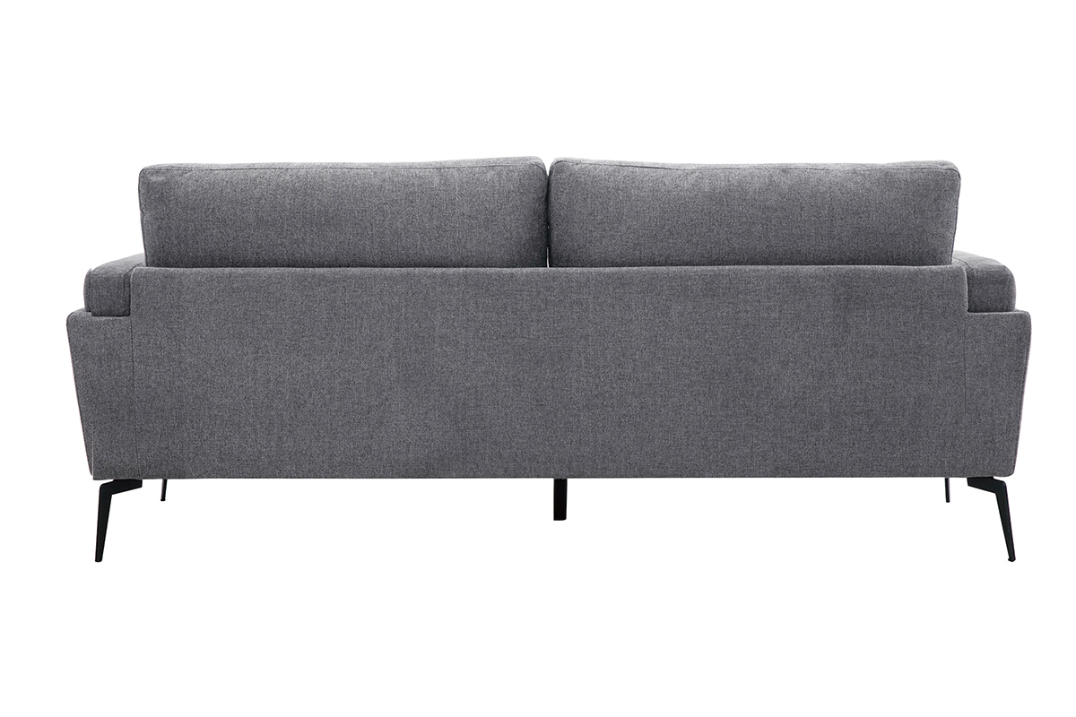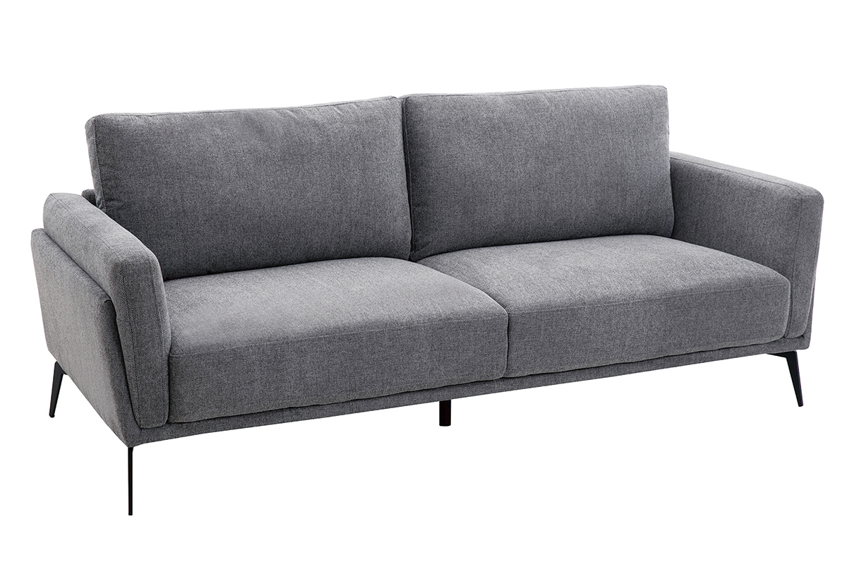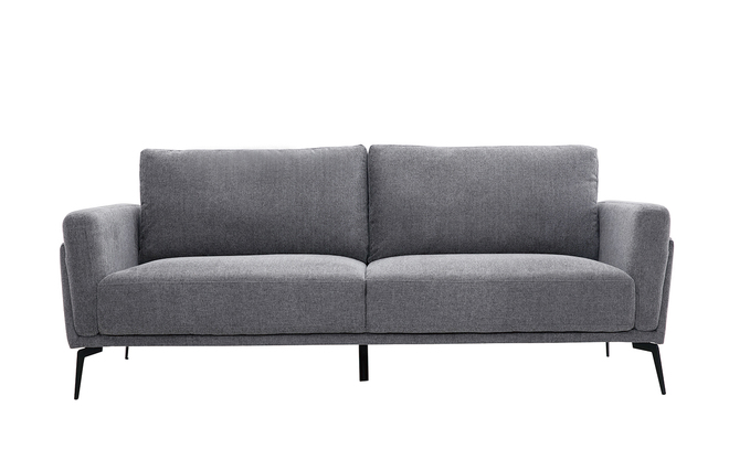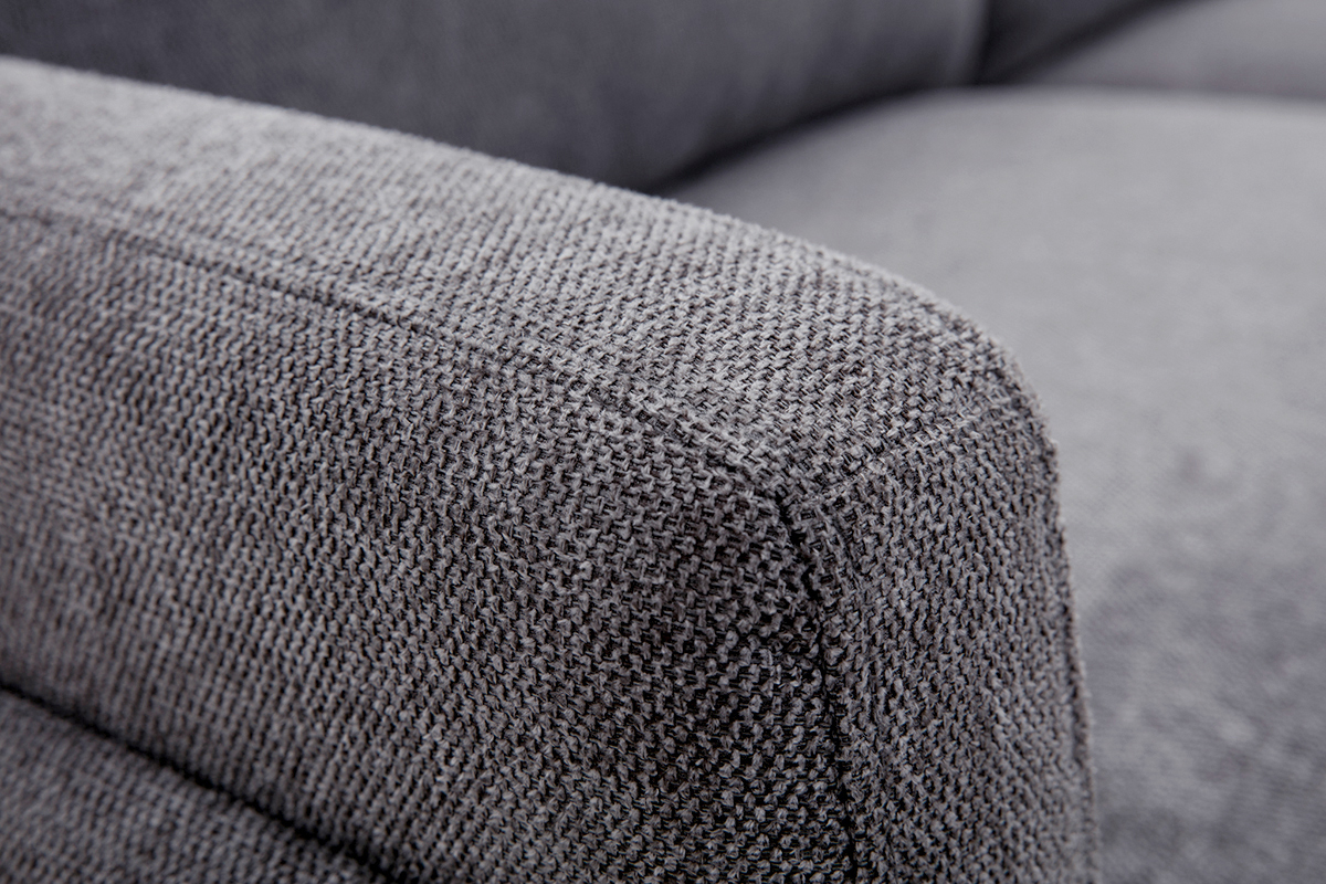 Le canapé MOSCO se pare d'un joli tissu effet velours texturé gris (100% polyester). Cette couleur sobre et intemporelle s'installe avec aisance dans tous les intérieurs. Ses quatre pieds hauts en métal noir (H17 cm) viennent ajouter à l'ensemble une touche moderne et chic.