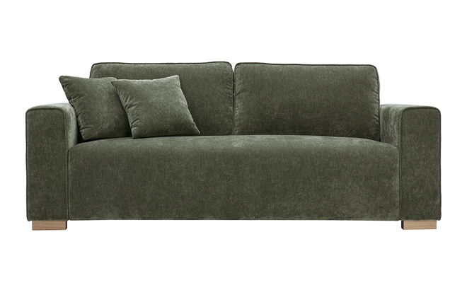 Canapé vert kaki livré prêt à monter. Le colis étant volumineux, nous vous conseillons de vérifier que portes et escaliers permettent son passage.