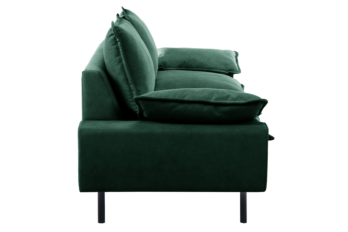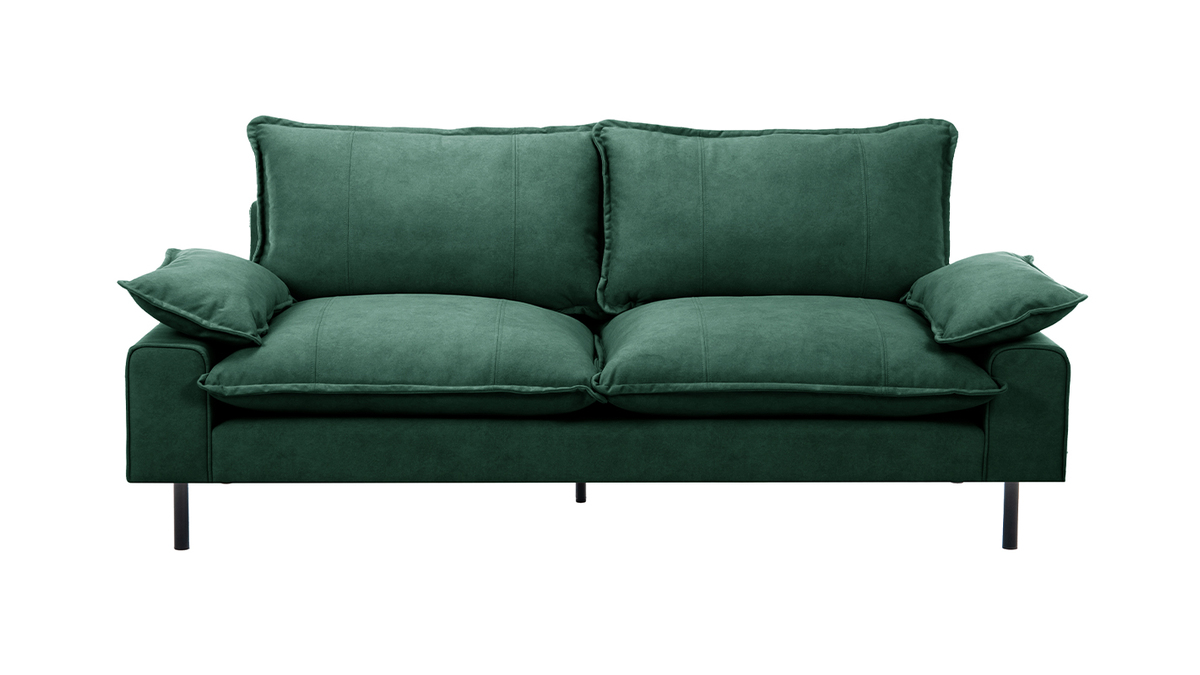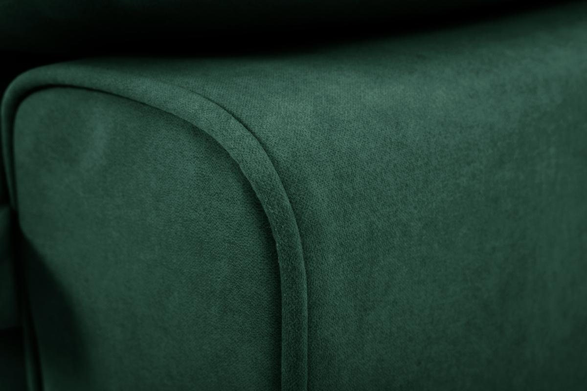 Sa teinte verte - profonde et audacieuse - lui vaut son style affirmé et envoûtant, capable de donner beaucoup de caractère à n'importe quel intérieur. La beauté de son doux velours vert foncé est mise en valeur par la finesse de ses lignes rebondies et la sobriété de ses pieds en métal noir. Un sans-faute !