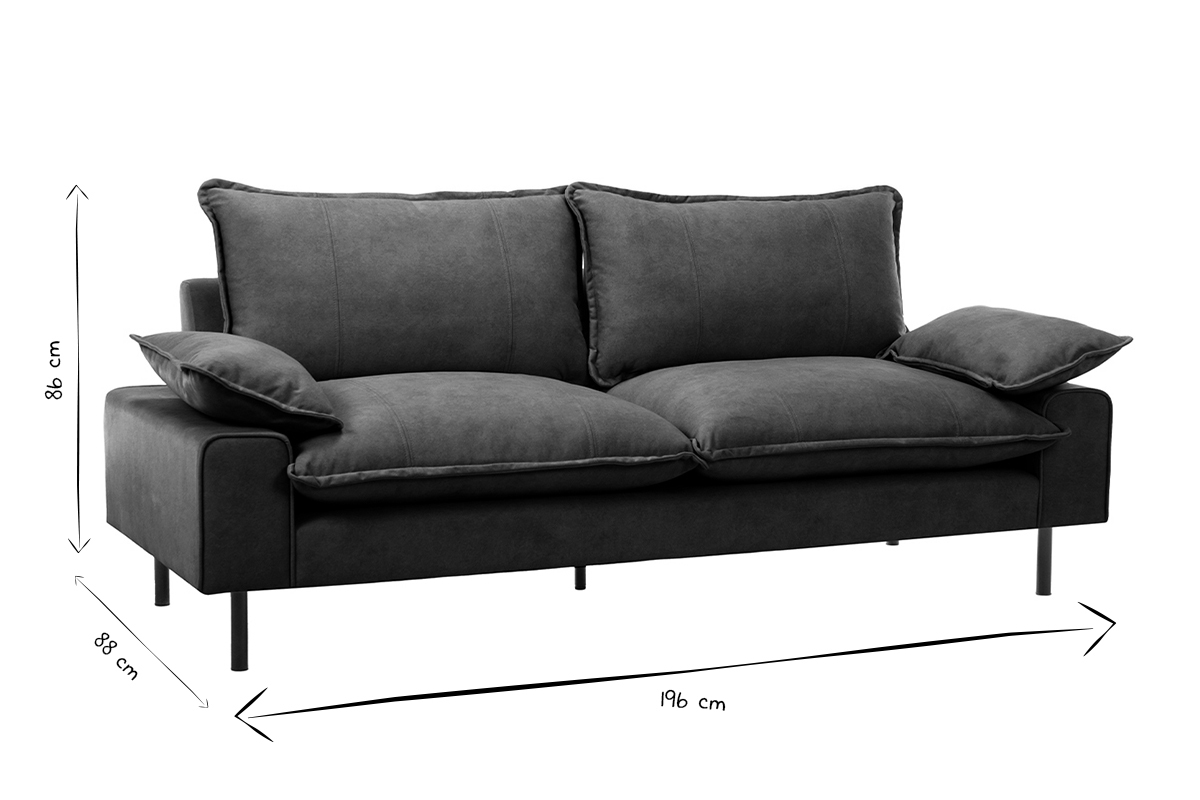 Ses faibles dimensions (L196 x P88 x H86 cm) en font un canapé 3 places peu encombrant, idéal pour les petits comme les grands espaces.