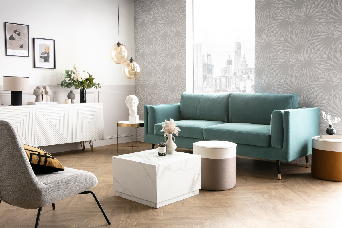 Canapé design 2-3 places en tissu velours fabriqué en Europe.