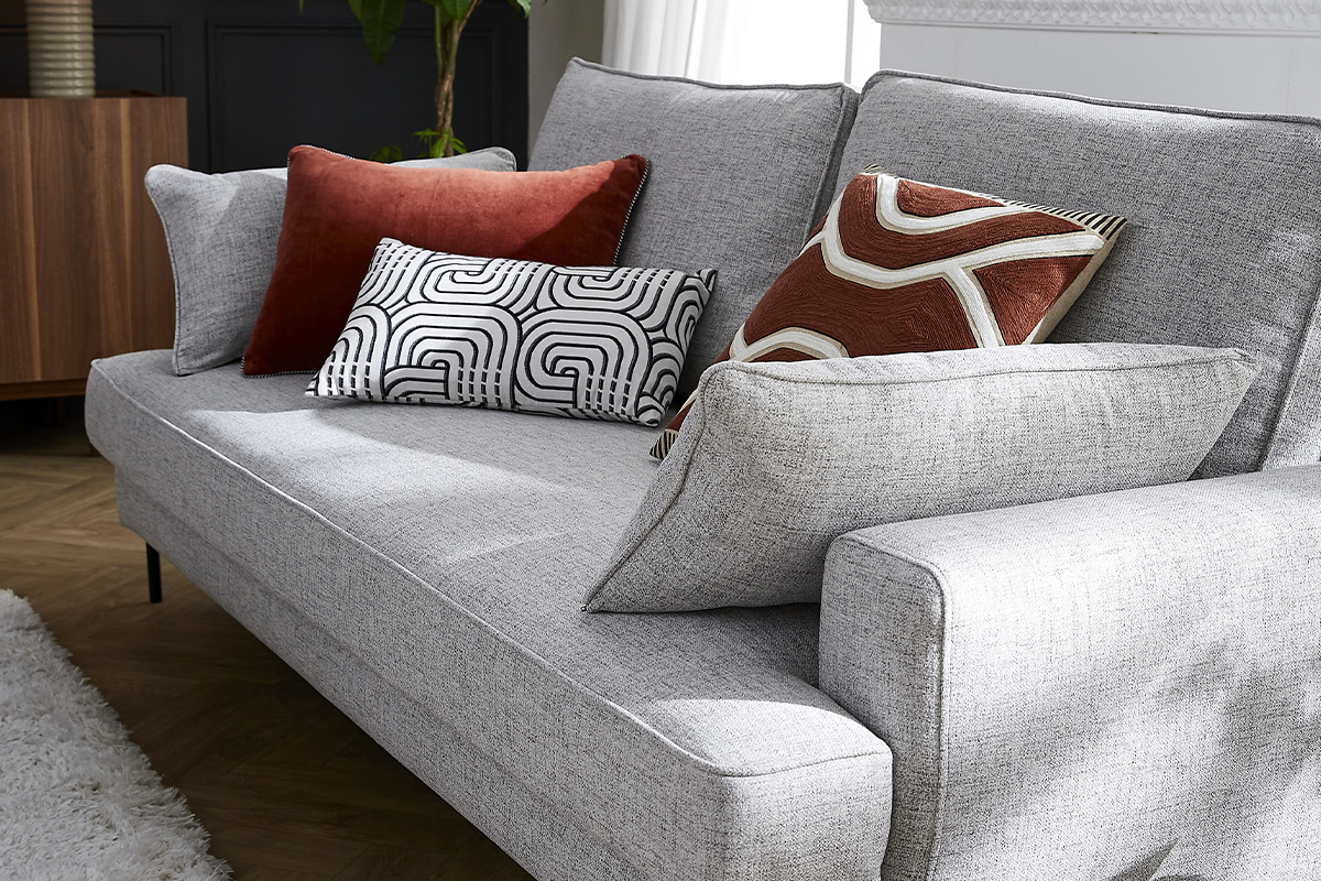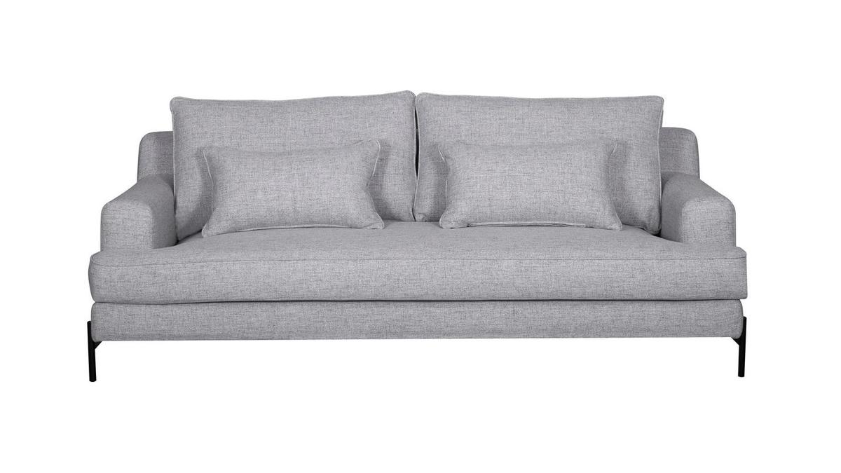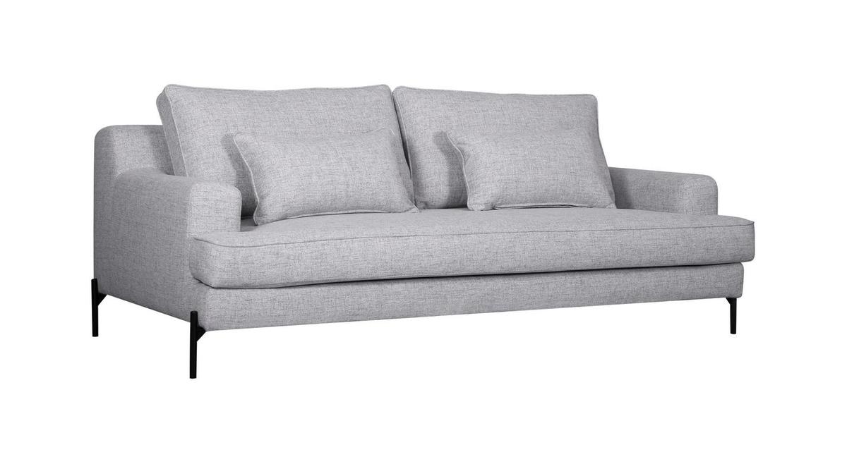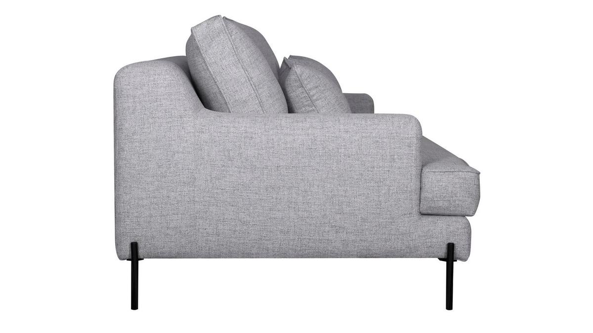 Le canapé 4 places PUCHKINE se distingue par la justesse de ses proportions. Sa silhouette élancée et délicate se révèle pourtant ample et spacieuse avec un beau volume d'assise (L158 x P58 cm). L'apparence minimaliste de sa structure et son fin piètement en métal noir allègent visuellement l'ensemble.
