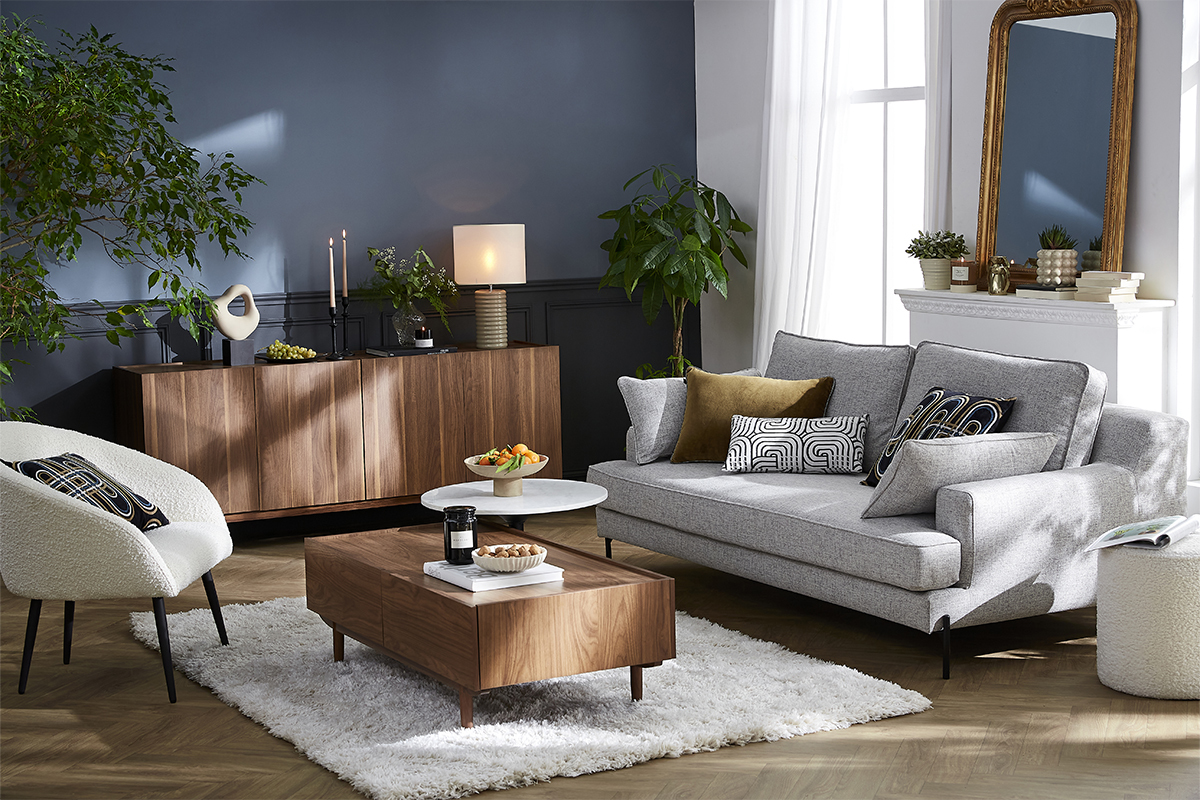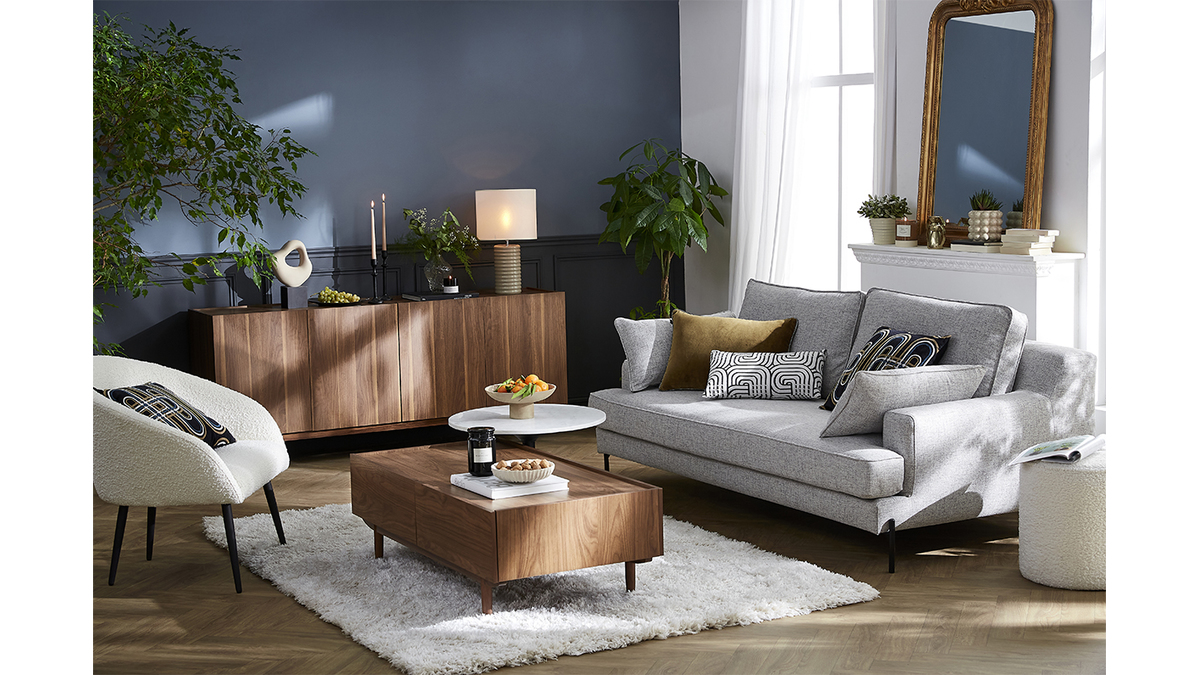 Ce canapé design à la silhouette affirmée incarne avec raffinement le style français. Ses lignes nettes et essentielles mettent en valeur le joli tissu gris chiné (100% polyester). Fabriqué en France, le canapé contemporain PUCHKINE conjugue notre exigence de qualité avec notre sens du détail. En l'associant à une belle table basse design de la collection Miliboo, on joue la carte de l'élégance dans le séjour.