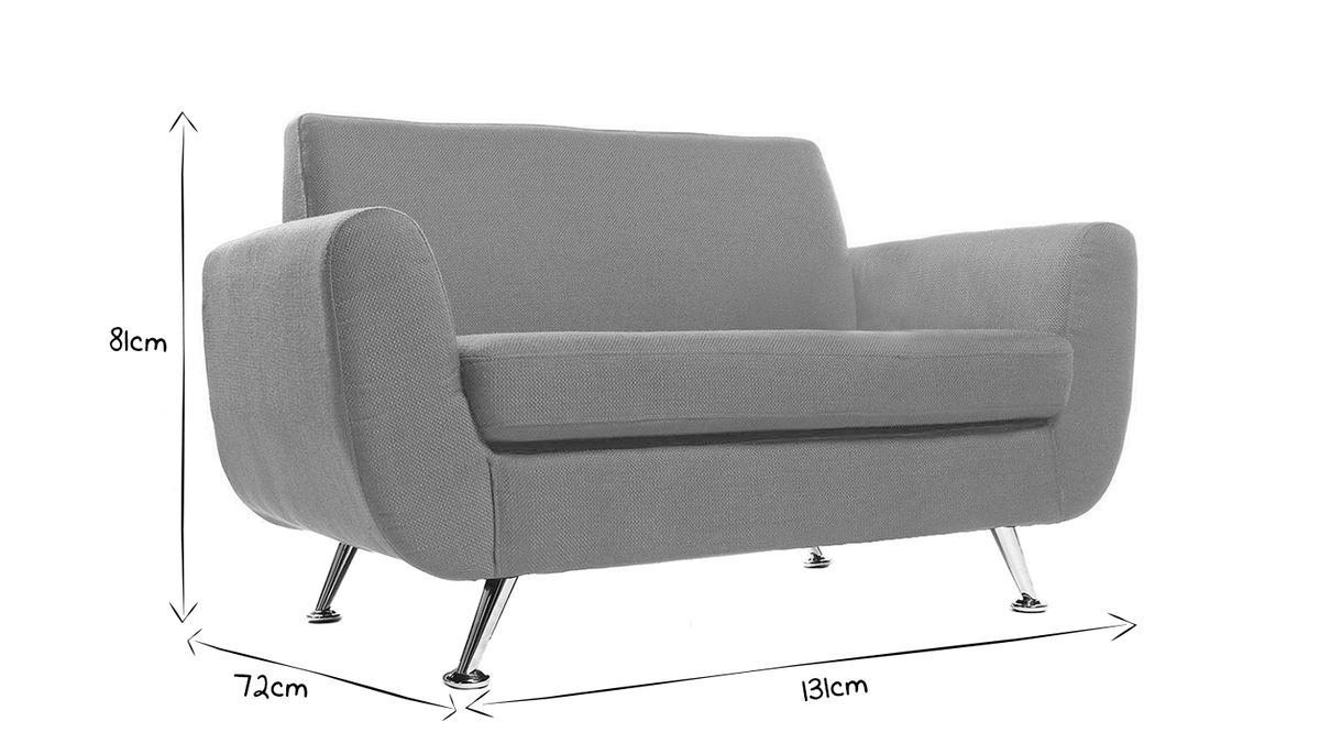 Ce canapé 2 places deviendra vite votre allié grâce à sa structure confortable et sa matière polyester facile d'entretien. Quant à ses pieds en métal chromé, ils apporteront une touche de modernité à votre salon.