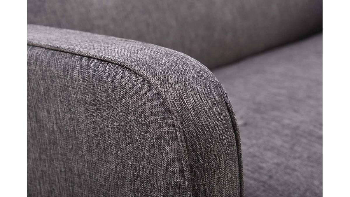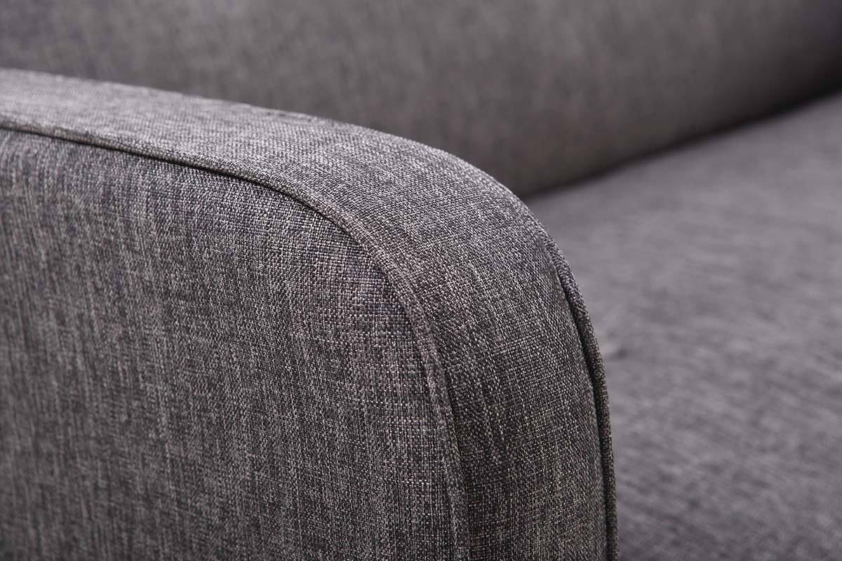 En tissu (100% polyester), ce canapé 2 places couleur gris foncé possède des formes linéaires et un piètement en bois clair qui lui allouent un style nordique ultra tendance aujourd'hui.