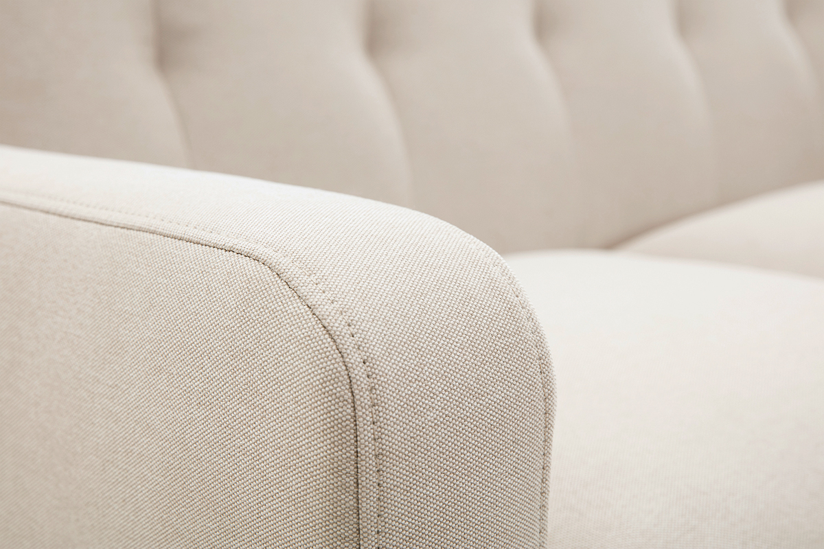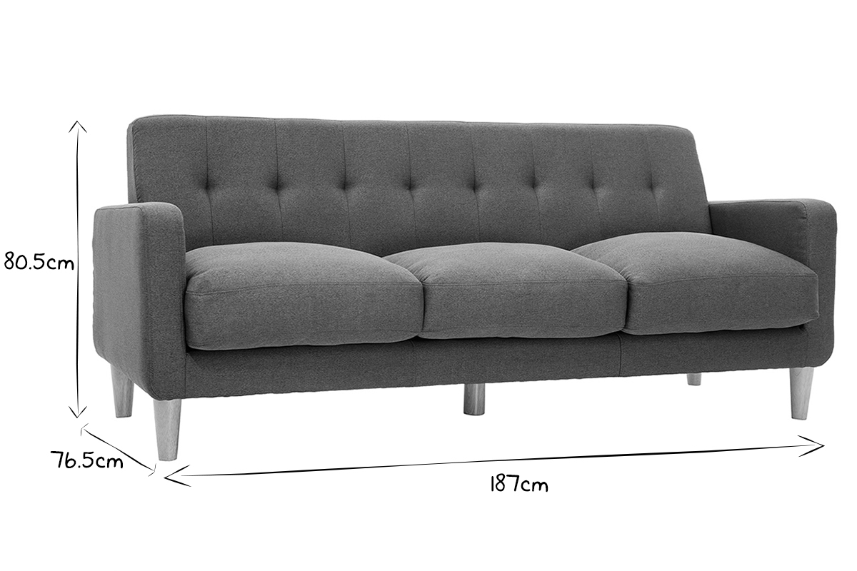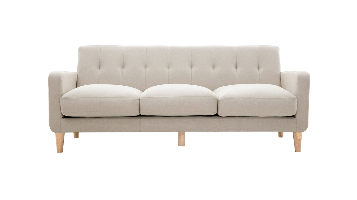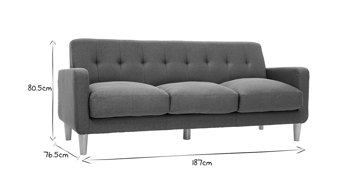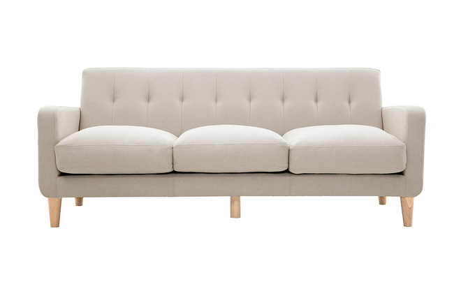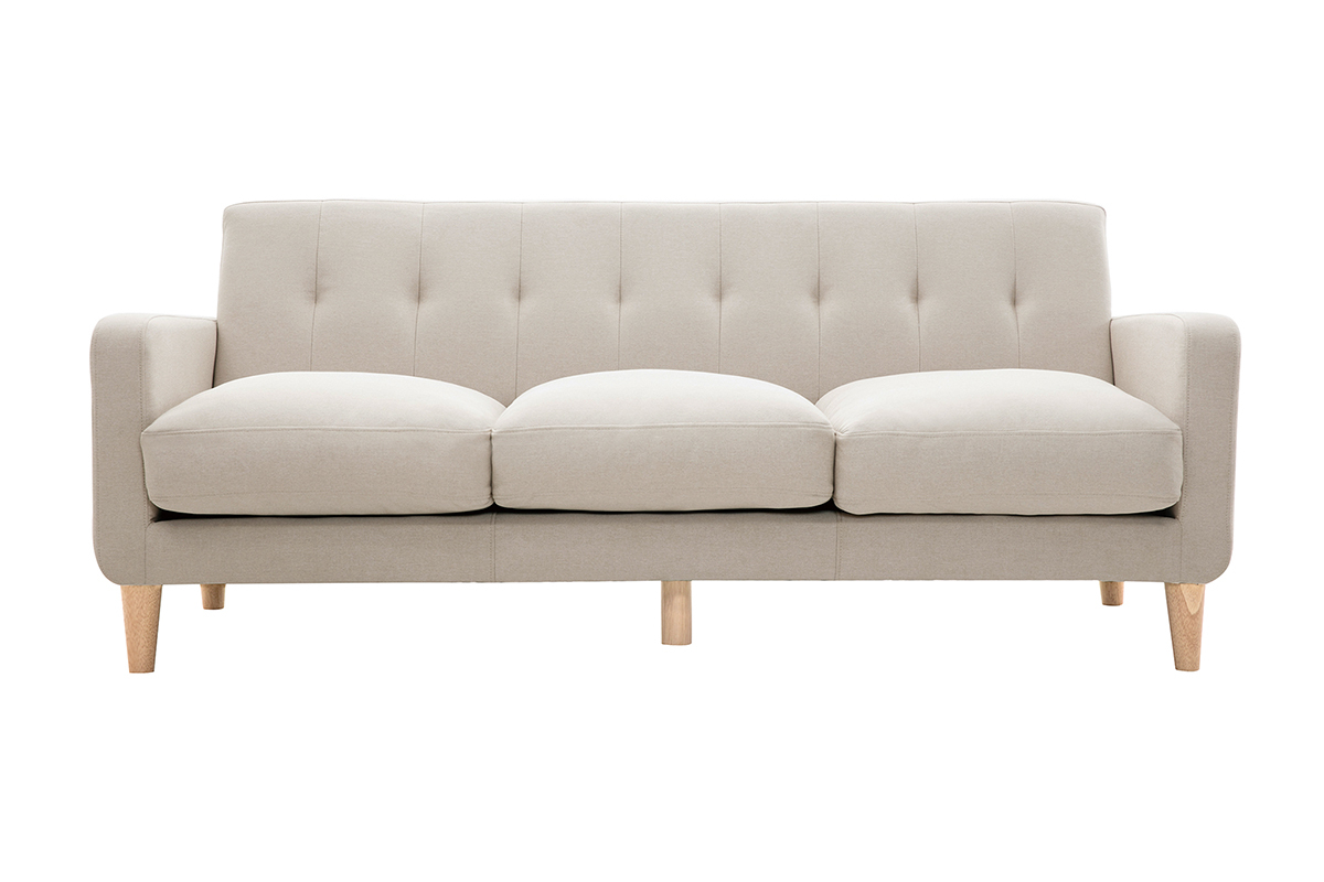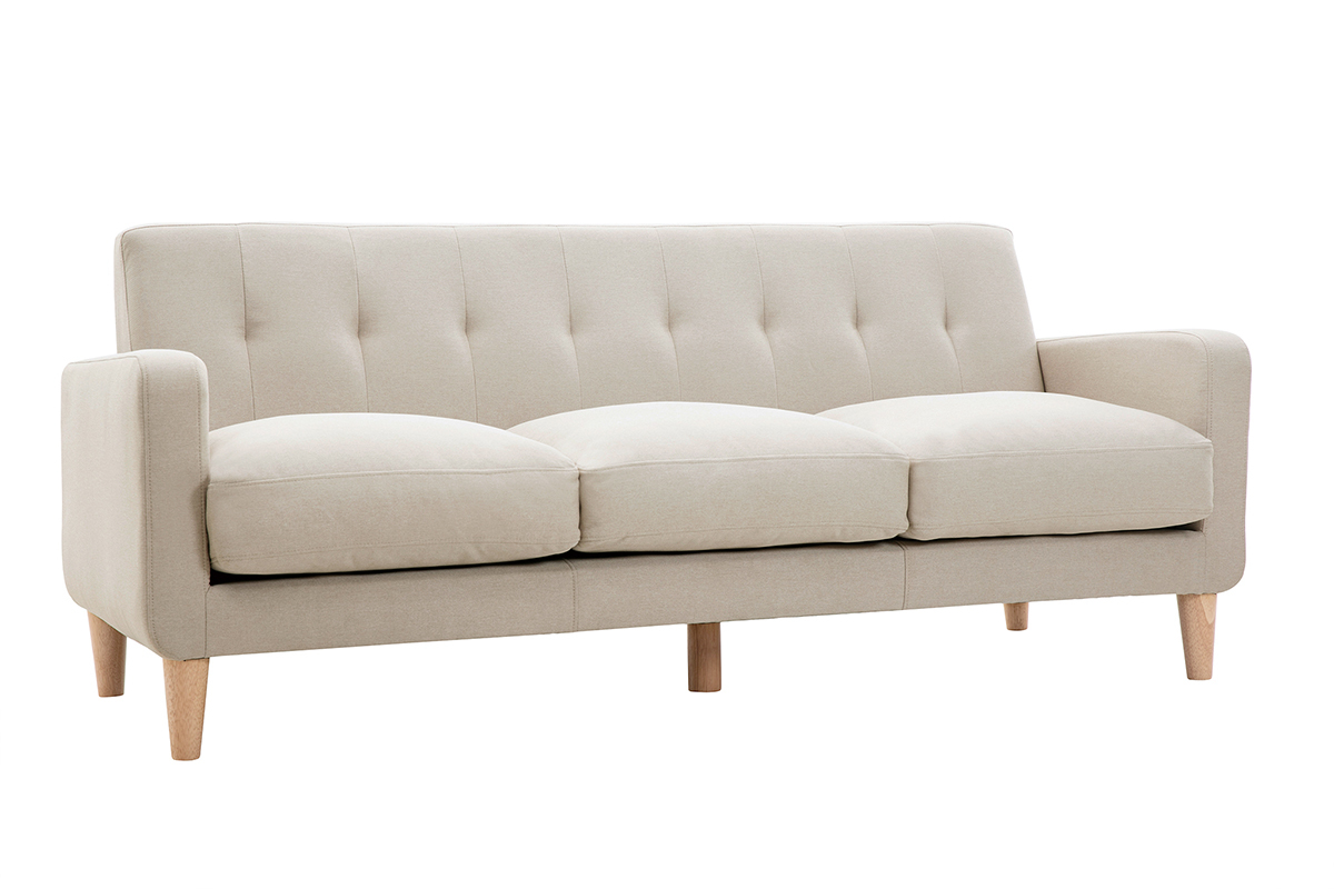 Les dimensions du canapé scandinave en tissu beige sont idéales pour se créer un bel ensemble de salon dans un petit espace. Avec ses 187 cm de long, c'est un canapé 3 places confortable mais peu encombrant !