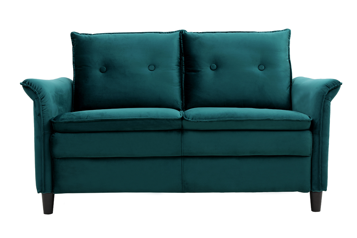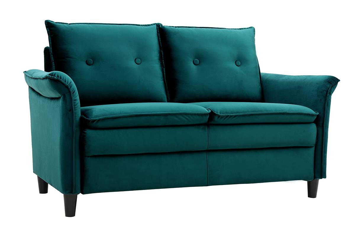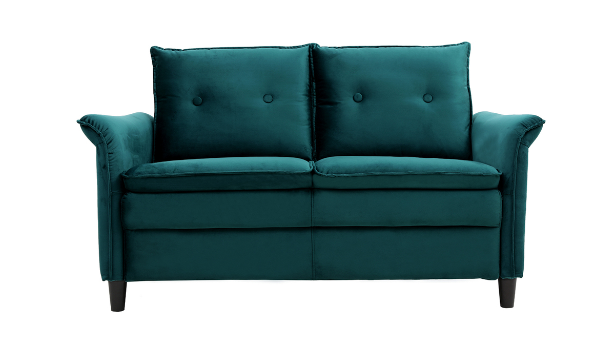 Le design du canapé CLIFF a été pensé pour conjuguer avec subtilité le style moderne et l'esprit classique. Les accoudoirs légèrement recourbés ainsi que les capitons sur le dossier en font un meuble tendance et inédit. Quant au revêtement en velours couleur pétrole, il apporte beaucoup de douceur et de raffinement à l'ensemble.