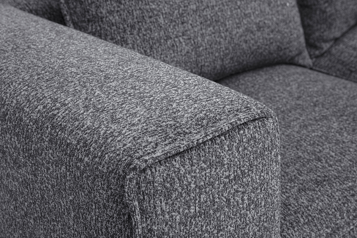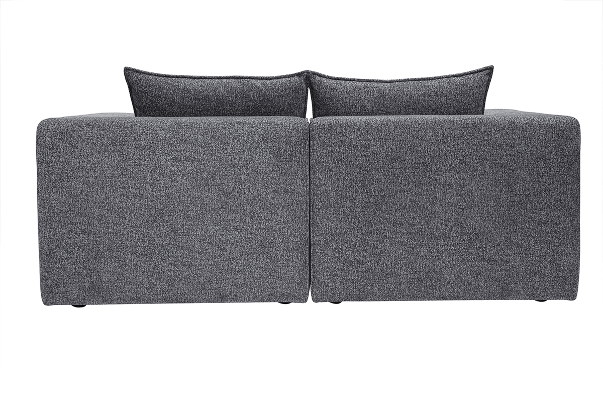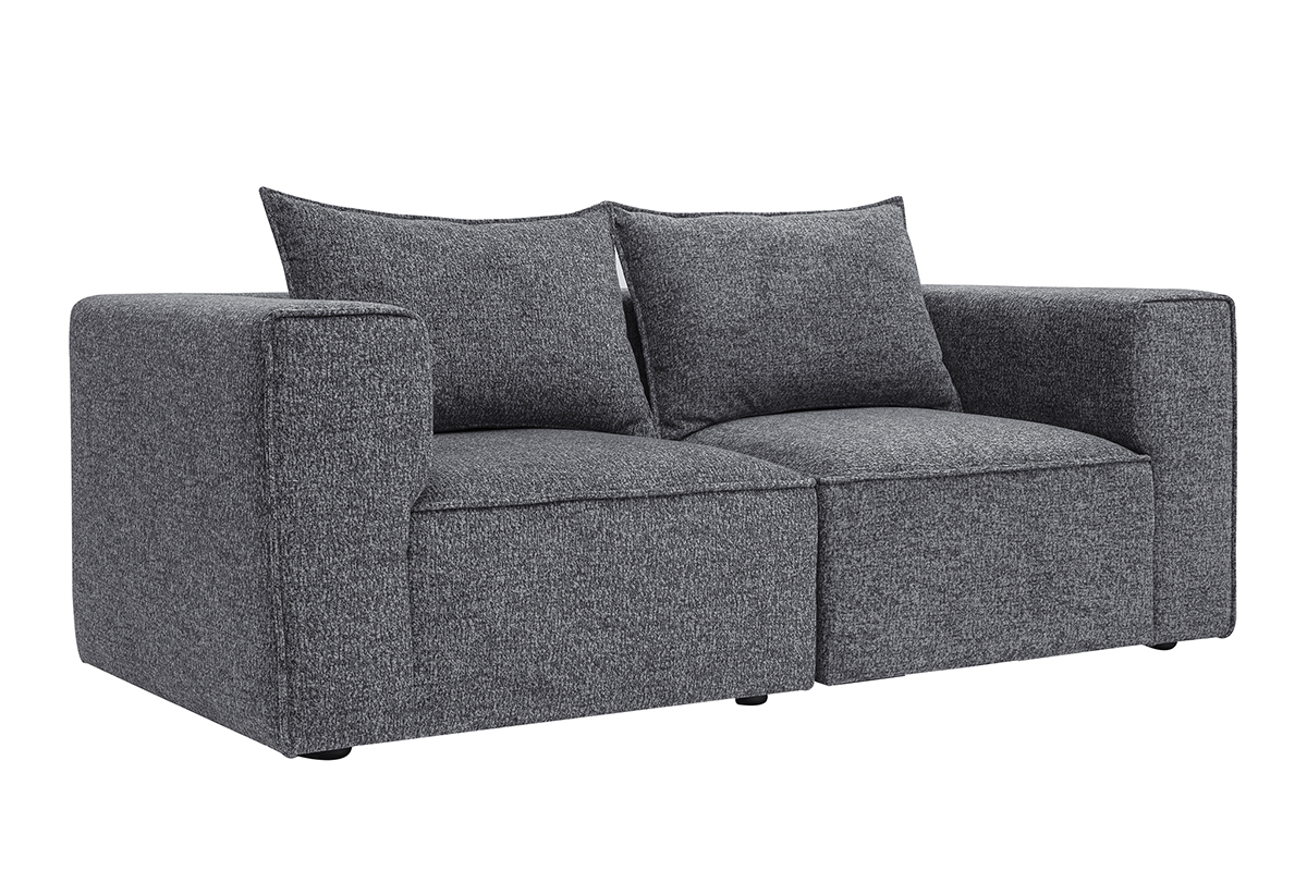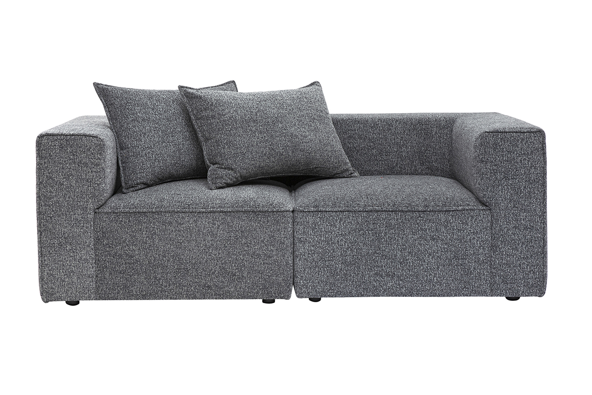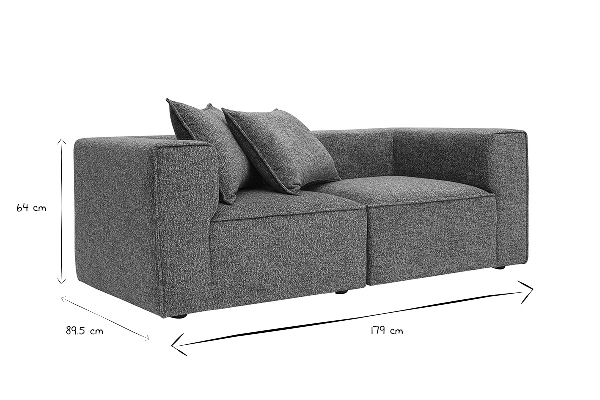 Chaque module mesure L89.5 x P89.5 x H64 cm, offrant une assise spacieuse et accueillante. Leur revêtement en tissu chiné gris foncé séduit par sa texture douce au toucher et son allure épaisse, facile à marier avec une décoration scandinave, industrielle ou contemporaine. Le tissu texturé apporte du relief visuel tout en dissimulant aisément les petites traces du quotidien.