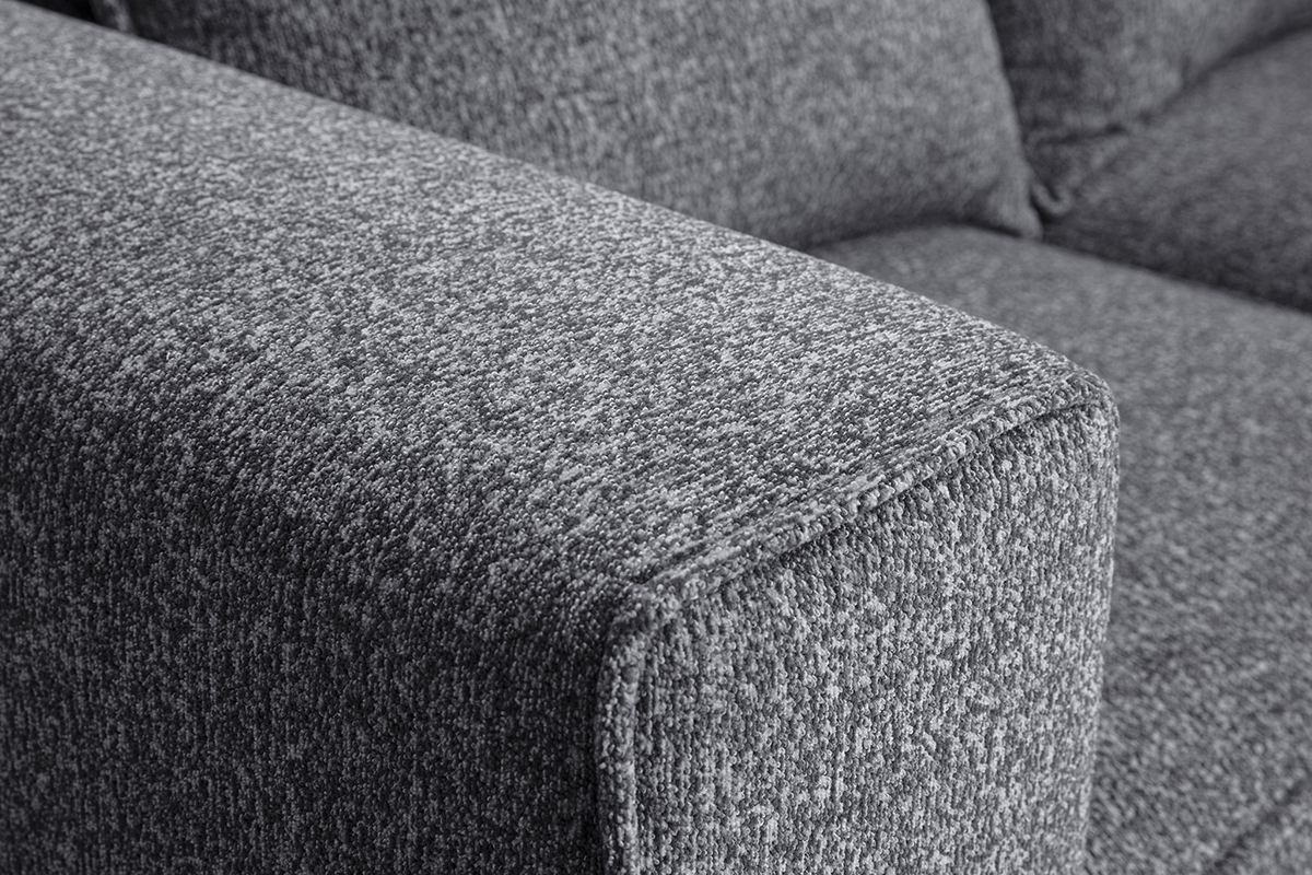 Le tissu chiné gris foncé confère au canapé KERRY une texture visuelle riche et un style raffiné, tout en étant facile à marier avec d’autres éléments de décoration. Sa couleur profonde et neutre en fait un choix polyvalent qui s’harmonise aussi bien avec des teintes claires pour un contraste subtil, qu’avec des tons plus sombres pour une ambiance feutrée.