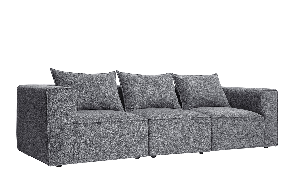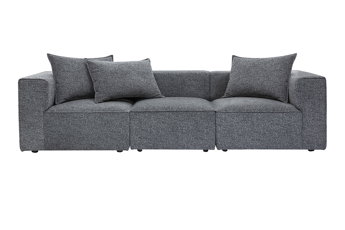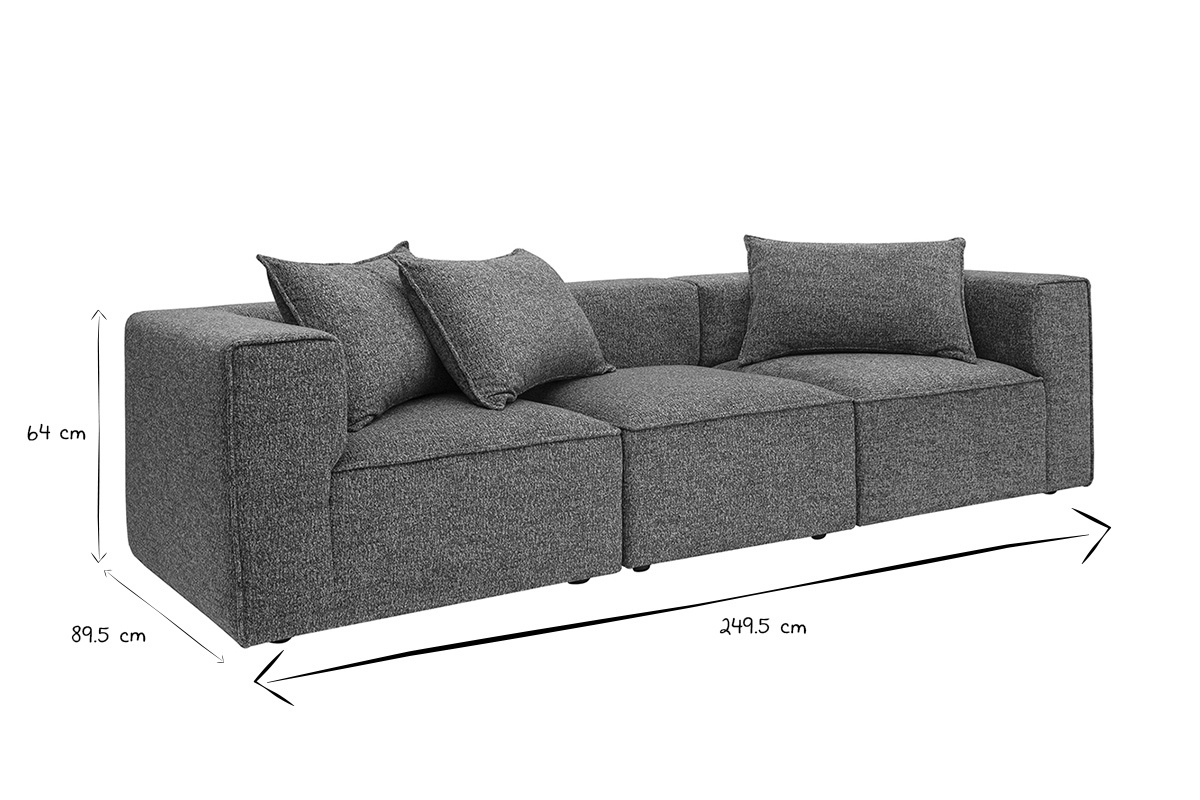 Ce canapé modulable se compose de 3 éléments indépendants qui peuvent être réorganisés selon vos envies et vos besoins. Cette flexibilité le rend idéal pour s’adapter aux petits comme aux grands espaces, tout en offrant une solution évolutive. Les coussins généreusement rembourrés offrent un excellent maintien et invitent à la détente. Le dossier bas et les accoudoirs larges renforcent eux, le confort et l’aspect cocooning de l’ensemble. L’assise, à la fois ferme et accueillante, garantit une tenue impeccable même après une utilisation prolongée.