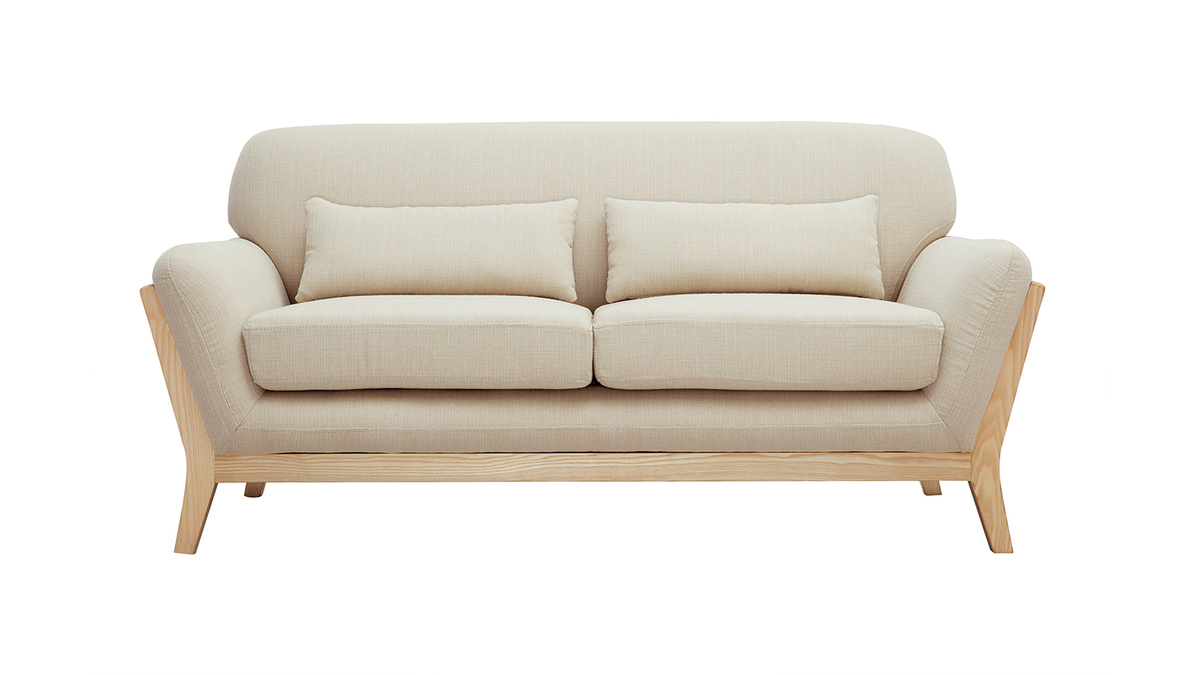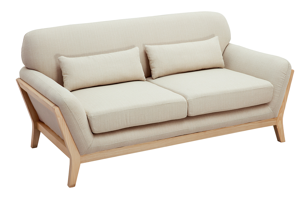 Canapé scandinave 2 places en tissu beige et bois clair YOKO