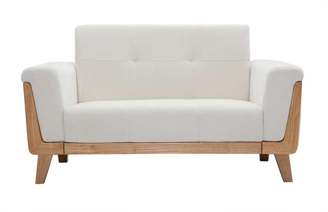 Pour contraster avec les beaux reflets blonds du bois, ce petit canapé 2 places s'habille d'un superbe tissu effet velours blanc cassé à la finition capitonnée. Doux et intemporel, ce revêtement apporte un aspect hyper chaleureux à FJORD.