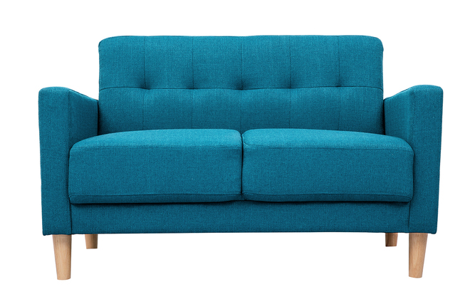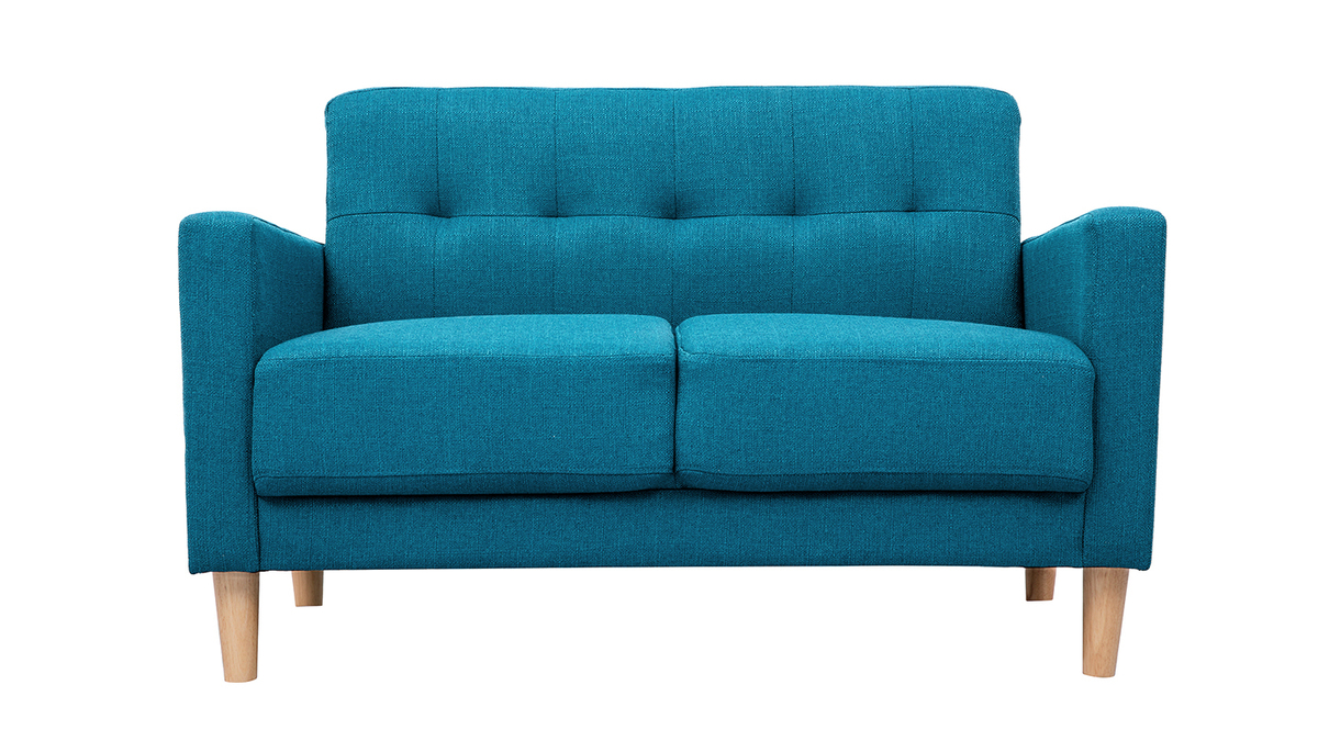 Avec son assise pour deux personnes en tissu bleu canard, il apporte une touche chaleureuse et une teinte tendance à votre intérieur. Ce canapé joue sur un subtil jeu de formes et un dossier capitonné qui convient parfaitement à un salon classique ou plus moderne.