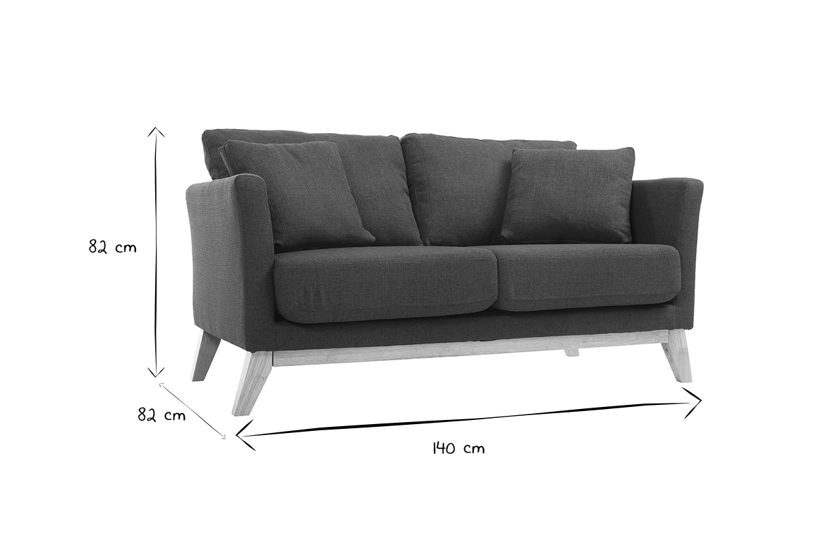 Les dimensions du canapé 2 places OSLO sont adaptées aux petits espaces. D'une longueur de 140 cm et d'une profondeur de 80 cm, ce canapé peut accueillir 2 personnes sans encombrer la pièce. Grâce à ses 2 gros coussins d'assise et de dossier ainsi que ses 2 petits coussins d'appoint compris, il offre un bon confort d'assise. Et les coussins sont déhoussables, recevez sans vous inquiéter de l'entretien de votre canapé scandinave OSLO.