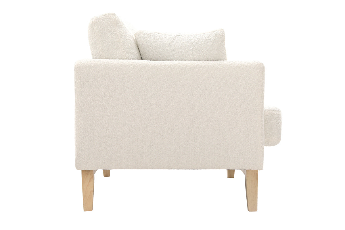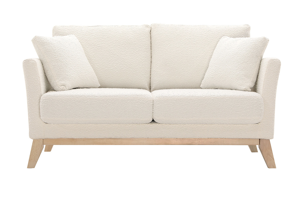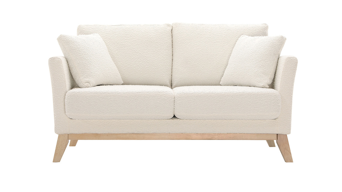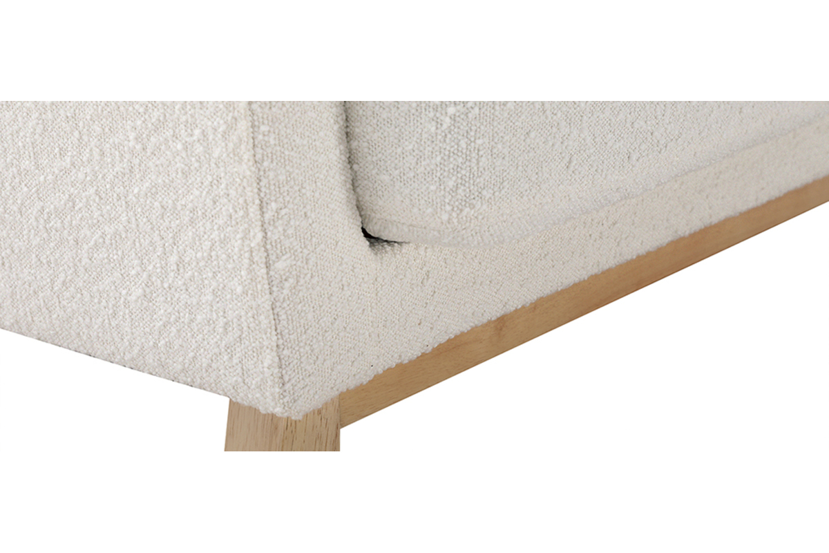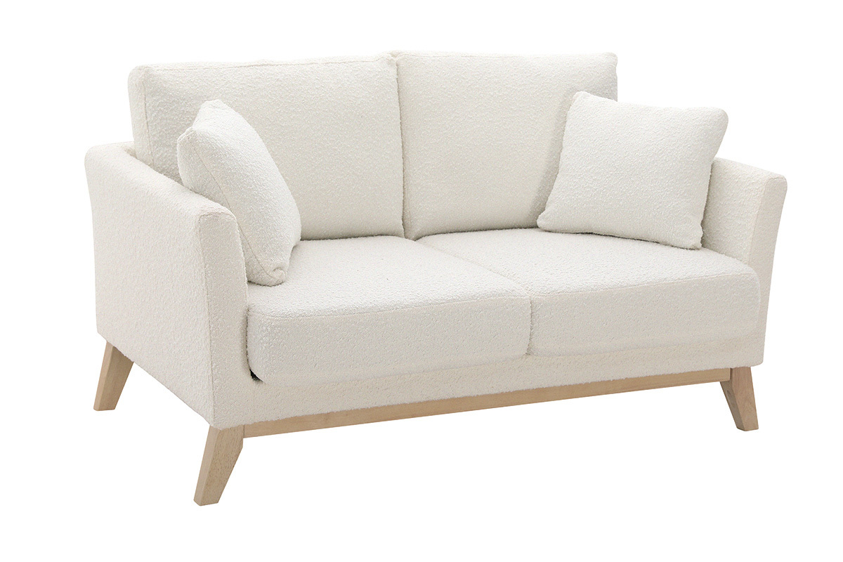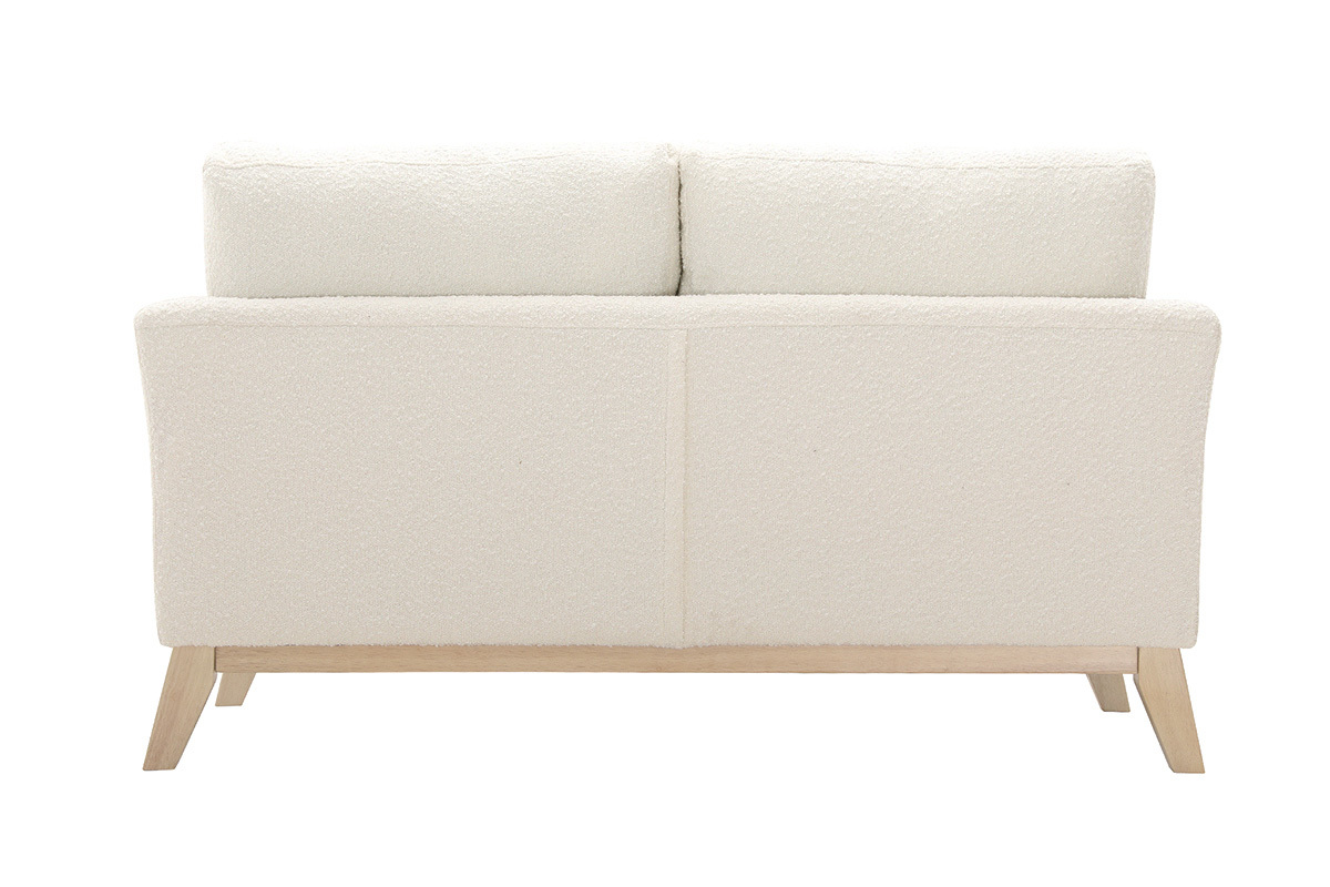 Avec son revêtement blanc en tissu effet laine bouclée, son piètement en hévéa massif et son design épuré, ce petit canapé s'inscrit dans la grande tendance de la déco nordique.