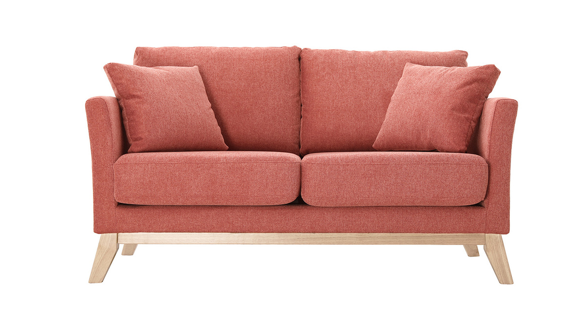 Avec son revêtement en tissu effet velours texturé, son piètement en bois clair et son design épuré, ce petit canapé s'inscrit dans la tendance nordique. Son tissu terracotta en fait une assise dans l'air du temps qui se mariera aussi bien avec une décoration d'inspiration scandinave qu'un intérieur moderne et graphique.