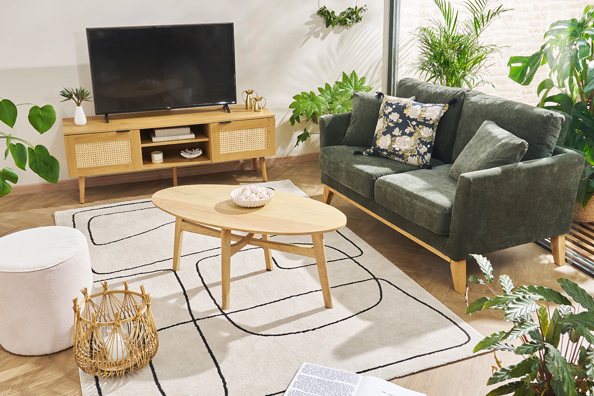 Avec son revêtement aussi doux à l'oeil qu'au toucher, son piètement en bois clair (chêne massif) et ses lignes épurées, le canapé OSLO s'inscrit dans la tendance nordique. Son tissu effet velours vert kaki en fait une assise dans l'air du temps qui se mariera aussi bien avec une décoration d'inspiration scandinave qu'avec un intérieur contemporain.