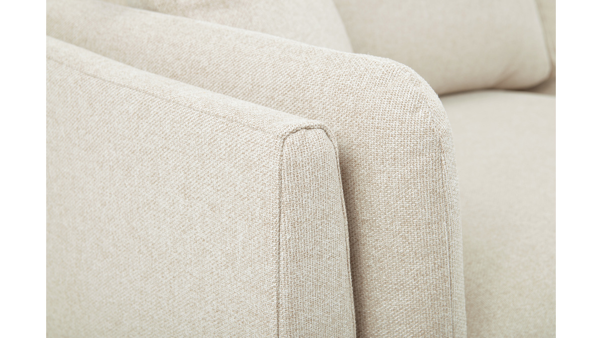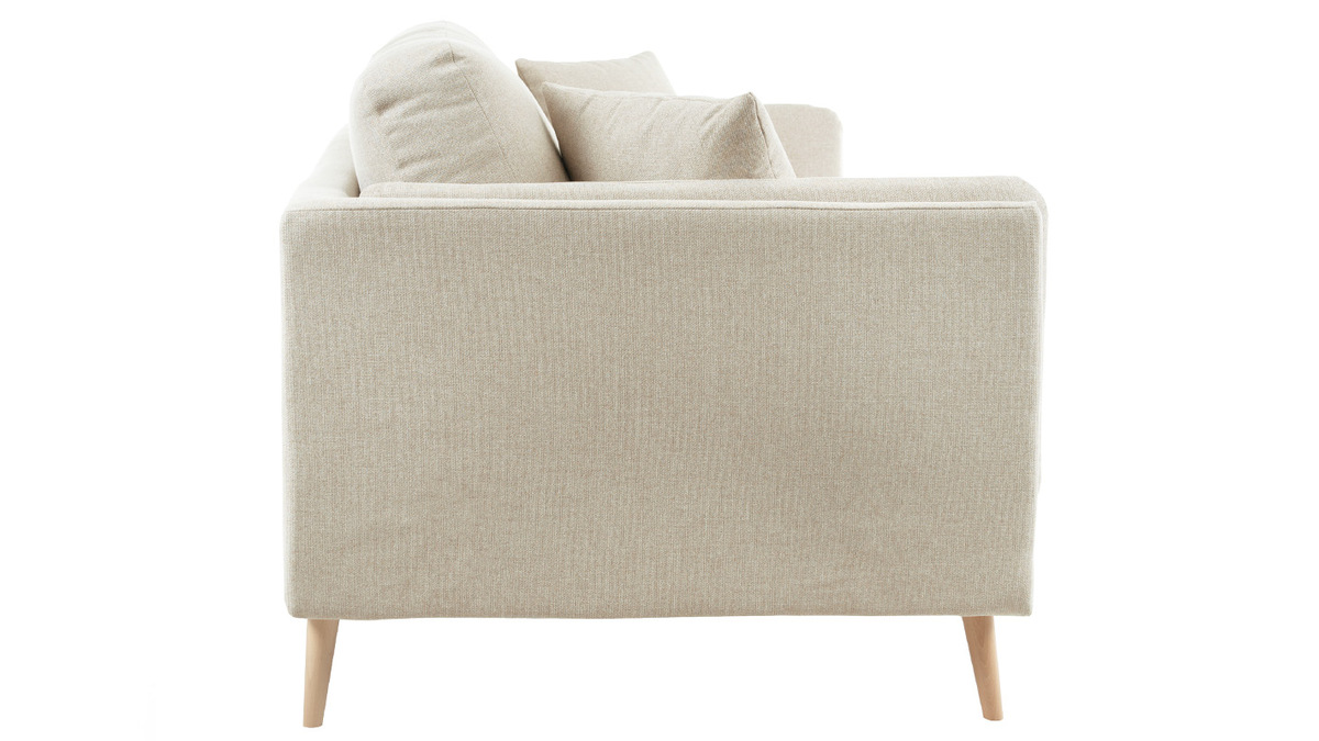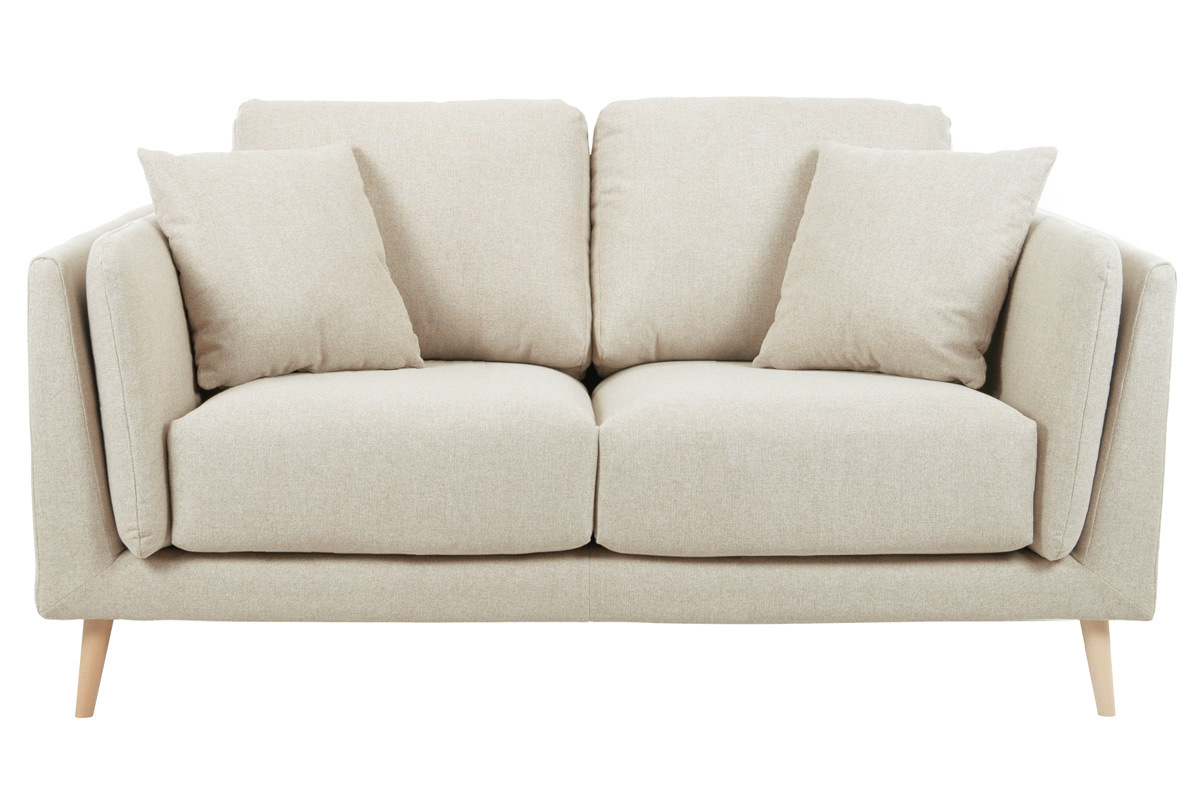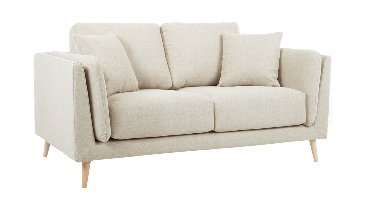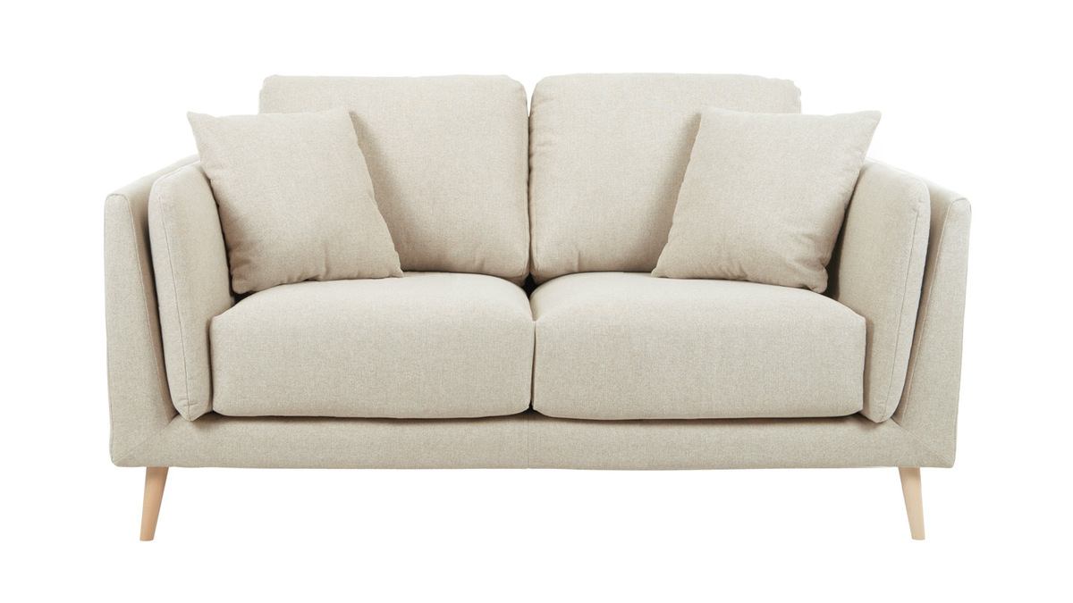 Dans l'esprit couture, ce canapé 2 places en tissu beige naturel présente des finitions soignées et un style d'une élégante simplicité. Sa silhouette épurée, son sublime revêtement en tissu beige naturel (100% polyester) et son piètement en bois massif reflètent toute l'élégance d'un canapé moderne allié à l'attrait cosy d'un canapé scandinave. Un résultat dans l'air du temps !