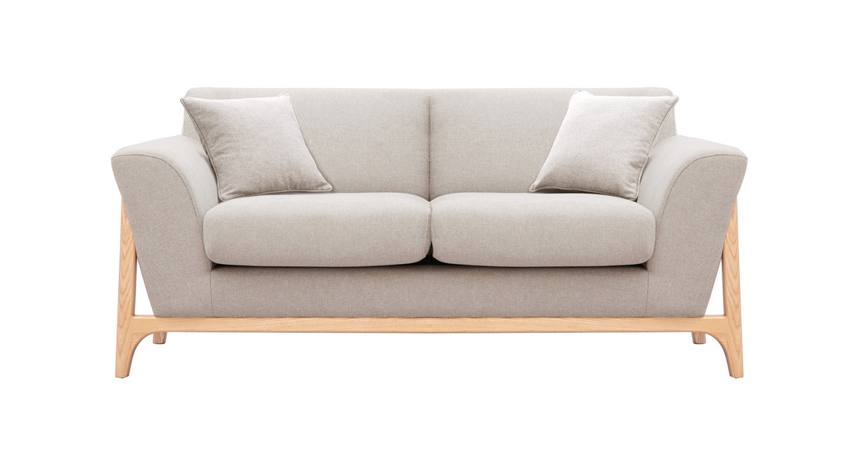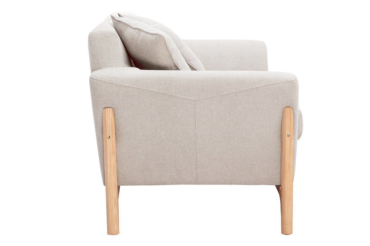 Simple et authentique, ce canapé beige et bois clair se démarque par le design singulier de son piètement en frêne massif. Filaire et ajouré, il souligne des formes rebondies habillées d'un revêtement au toucher réconfortant. Lumineux et chaleureux le tissu effet velours texturé beige forme un duo tout en douceur avec le bois clair. Bien que la silhouette intemporelle de ce canapé 2 places s'envisage dans de nombreux univers déco, avec son style minimaliste et cocooning, on l'imagine parfaitement compléter un séjour à l'ambiance wabi-sabi, japandi ou scandinave.