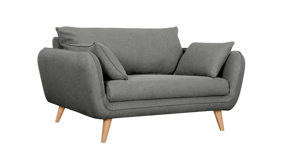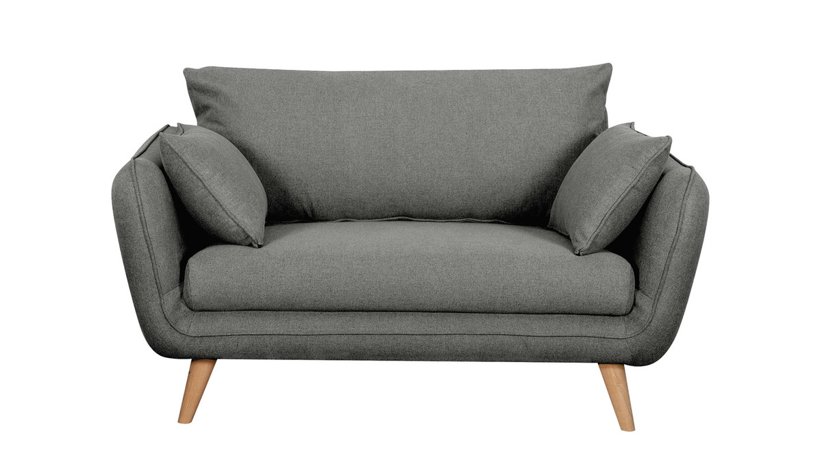 Avec son design tout en courbes et ses proportions généreuses, le canapé CREEP nous offre un confort durable. Son assise moelleuse (L107 x P60 cm) est une invitation à la relaxation tandis que son joli tissu gris anthracite (100% polyester) nous enveloppe de douceur. Il est complété par un piètement compas en hêtre massif à la fois naturel et un brin rétro.