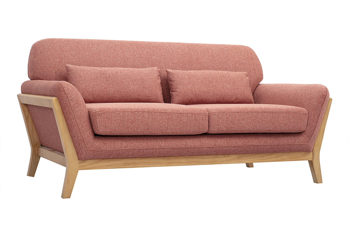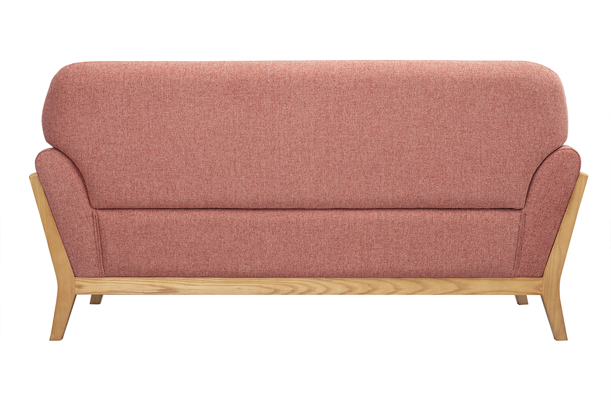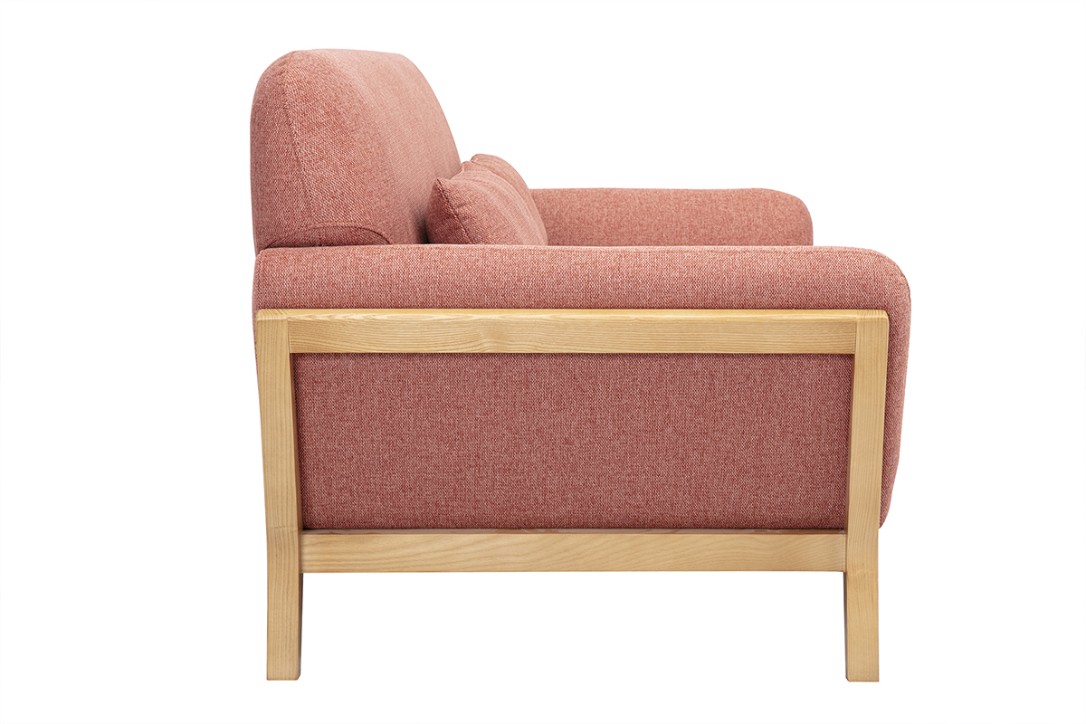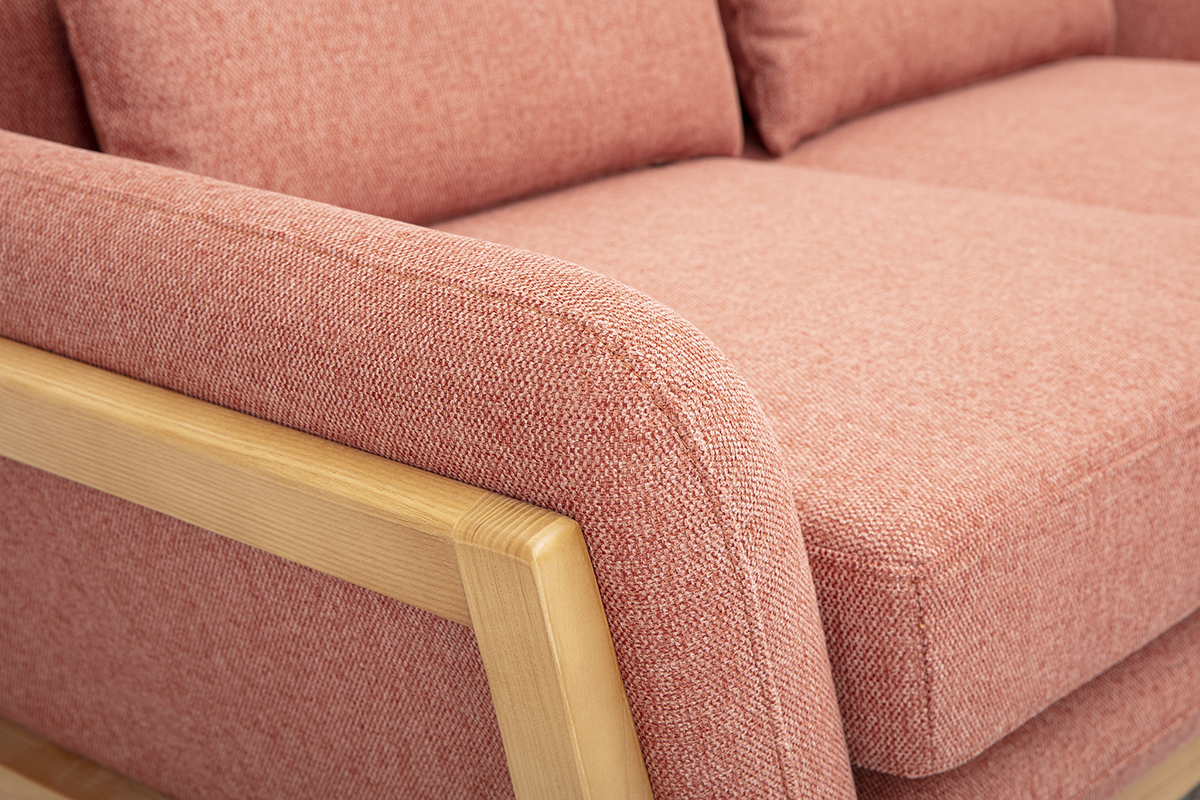 Le mariage entre une assise généreuse, habillée d'une trame 100% polyester - aussi agréable à l'œil qu'au toucher - et une structure apparente en bois massif (frêne massif), fait tout le charme de ce canapé en tissu effet velours texturé terracotta et bois clair.