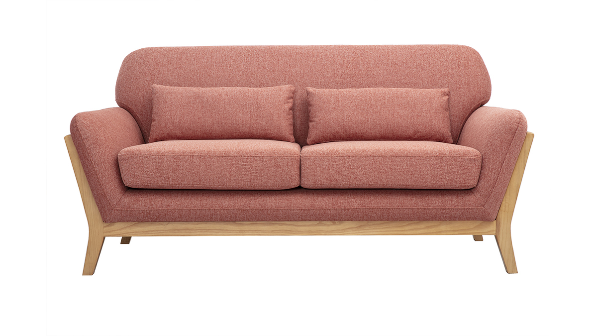 Avec ses coussins d'assise de 14 cm d'épaisseur et ses deux petits coussins d'appoint, ce canapé scandinave 2 places se veut résolument accueillant ! Ses accoudoirs légèrement inclinés sont parfaits pour les moments lecture... comme les pauses sieste ! Grâce à ses dimensions L159 x P85 x H79 cm, ce petit canapé terracotta 2 personnes trouvera parfaitement ses marques dans un studio ou un séjour où chaque m² compte !