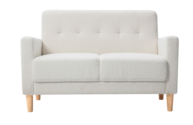 Avec son assise pour deux personnes en tissu effet laine bouclée blanc, il apporte une touche chaleureuse et des teintes douces à votre intérieur. Ce canapé joue sur un subtil jeu de formes et un dossier capitonné qui convient parfaitement à un salon classique ou plus moderne.