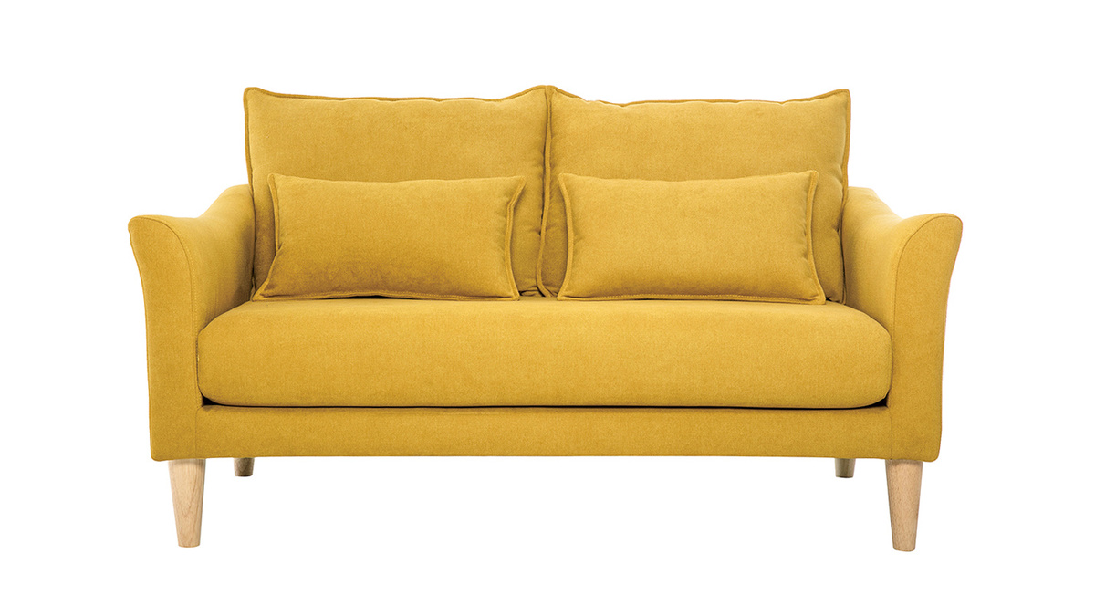 Ne vous lassez pas du charme de l'ancien, modernisez-le avec le canapé 2 places jaune moutarde KATE.