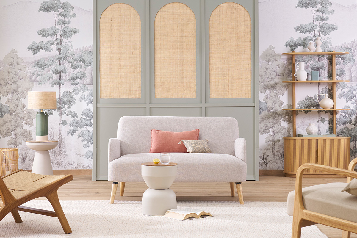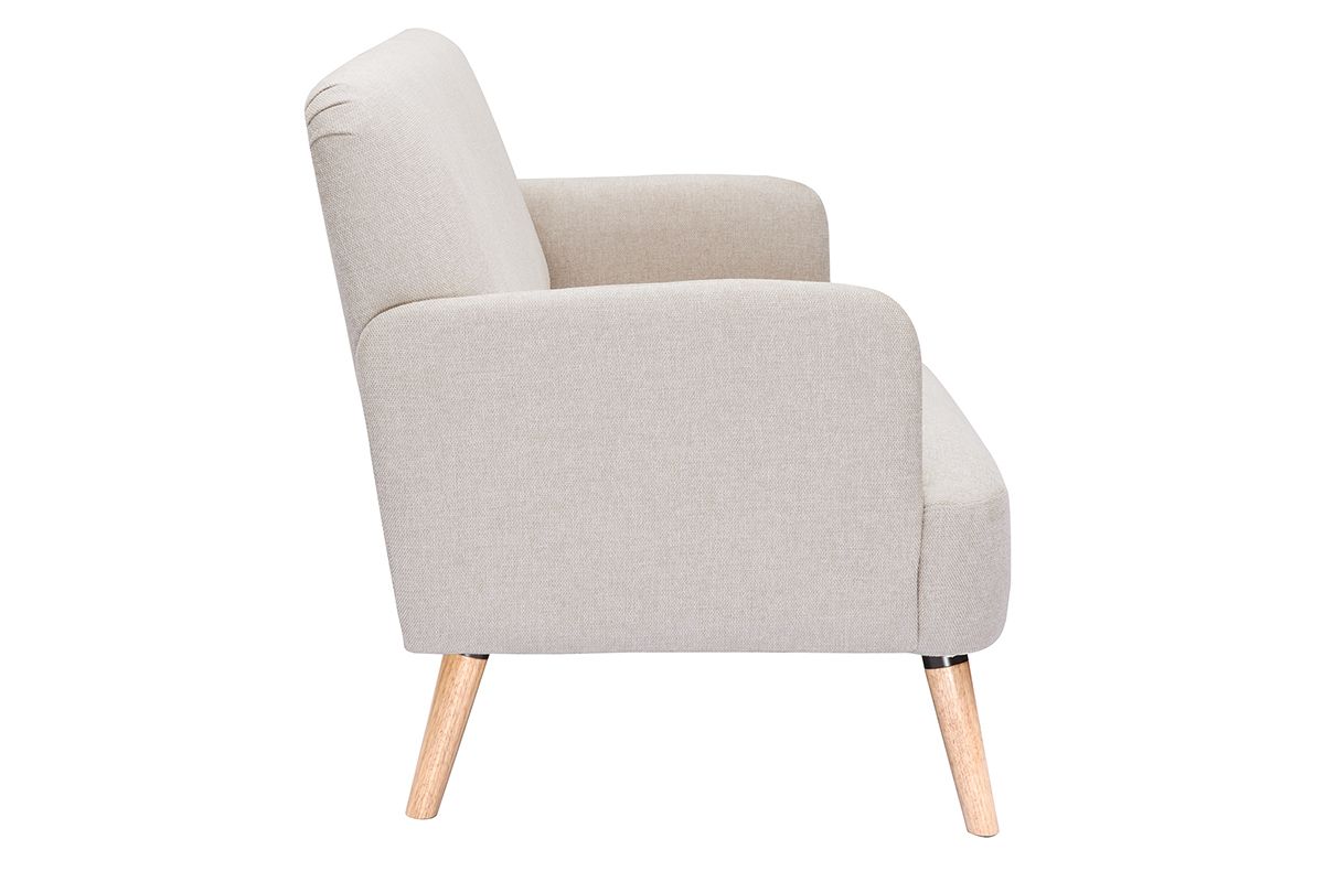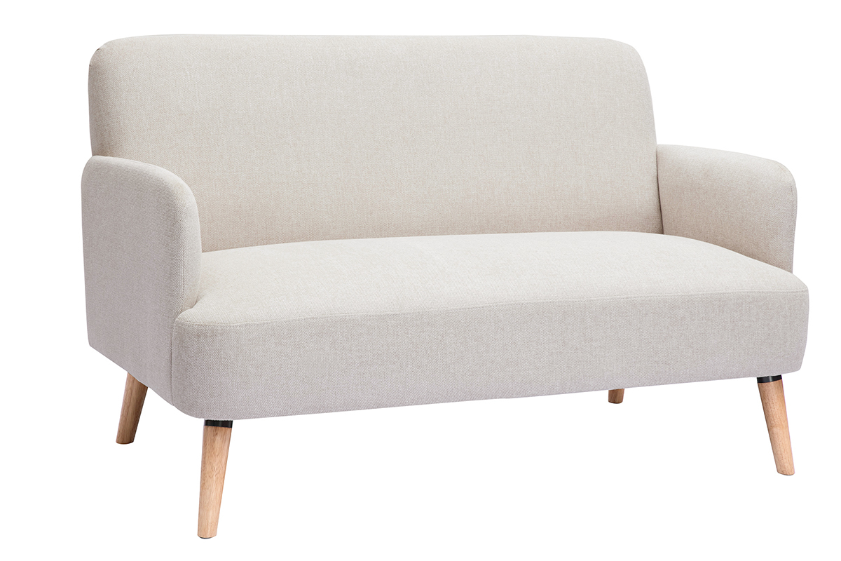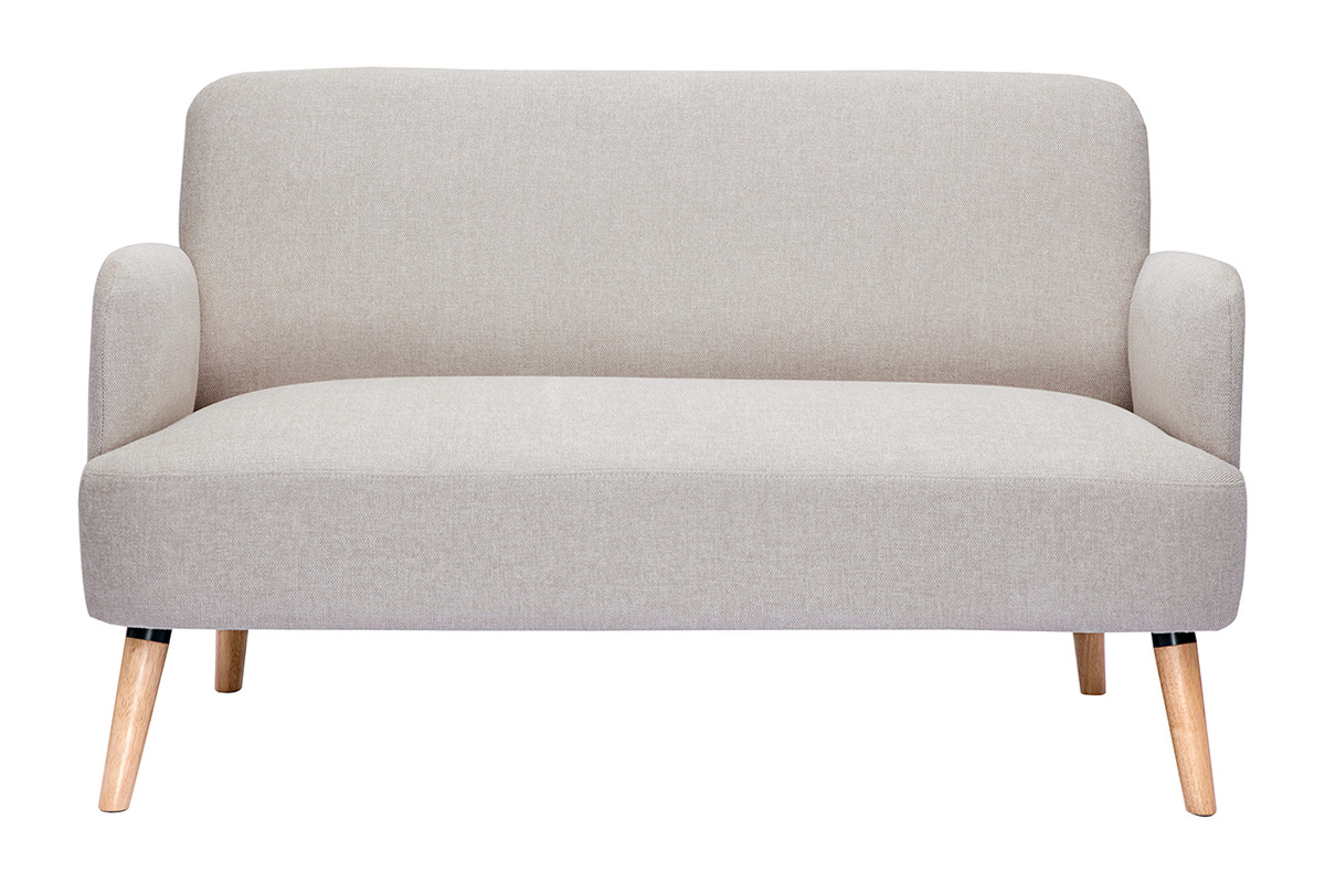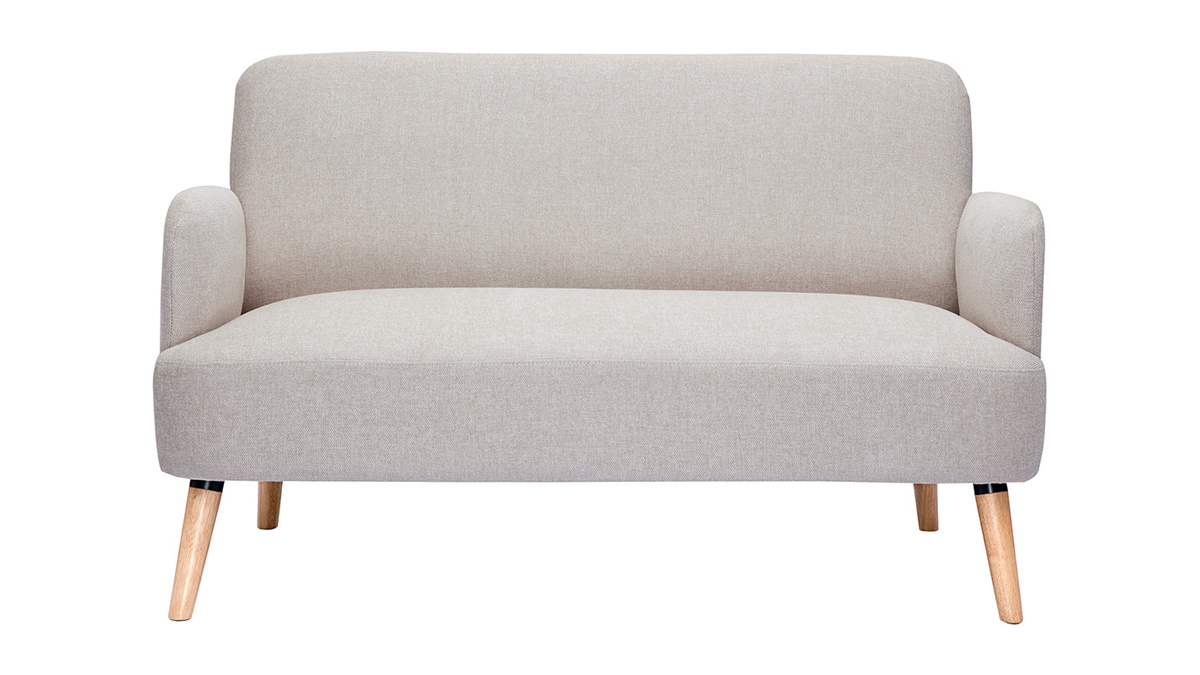 Canapé en tissu beige et bois clair livré prêt à monter.