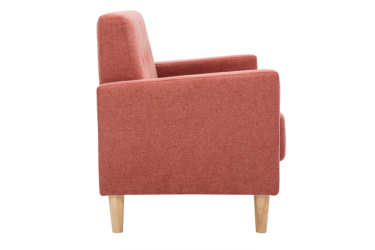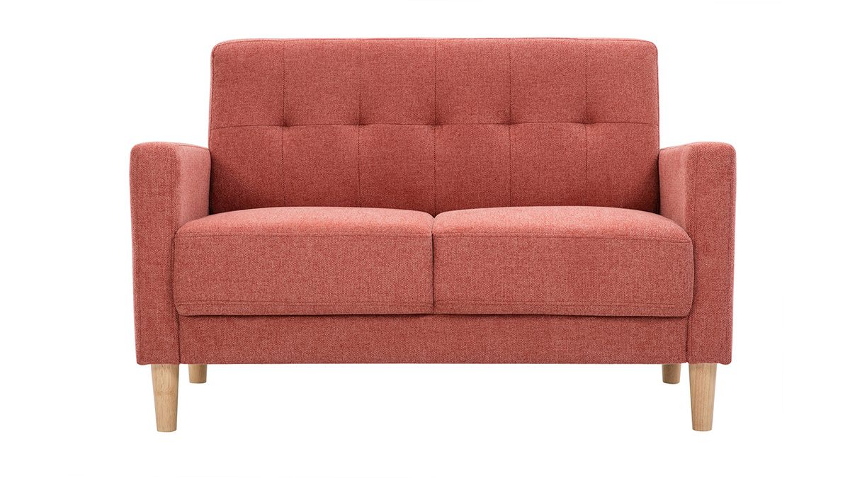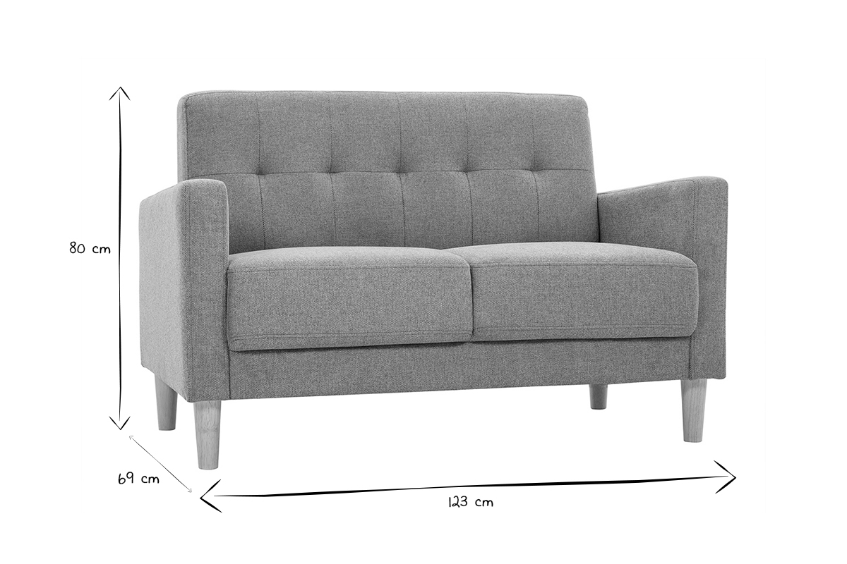 Son piètement en hévéa massif apporte un côté nature et scandinave en plus de lui conférer une stabilité et un maintien parfait. Son assise épaisse offre un bon confort et promet des soirées agréables et cocooning devant la télévision. Ses petites dimensions sont parfaites pour agrémenter un petit salon ou une chambre. Ce canapé 2 places peut être accompagné de fauteuils scandinaves assortis.