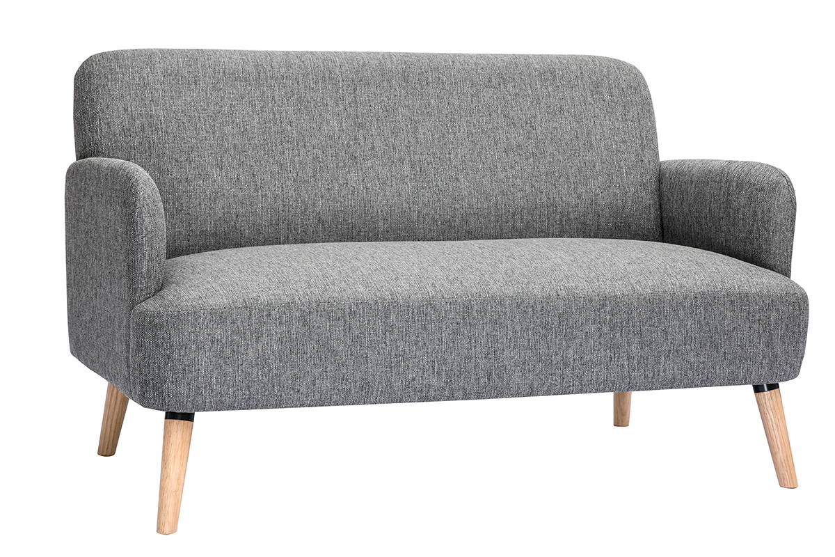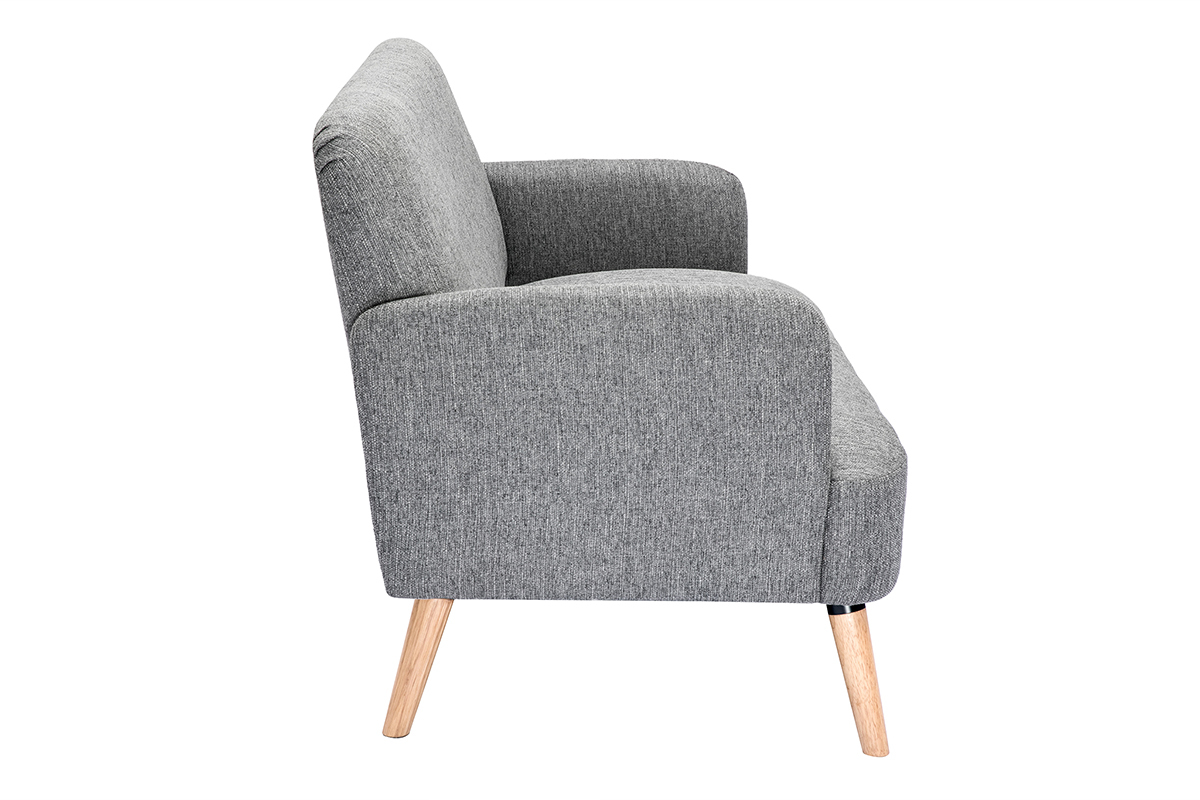 Canapé en tissu gris clair et bois clair livré prêt à monter.