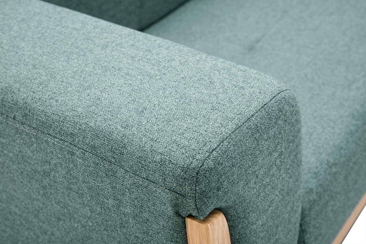 Pour contraster avec les beaux reflets blonds du bois, ce petit canapé 2 places s'habille d'un superbe tissu vert de gris à la finition capitonnée. Intense et infiniment tendance, ce revêtement apporte un aspect hyper chaleureux à FJORD.