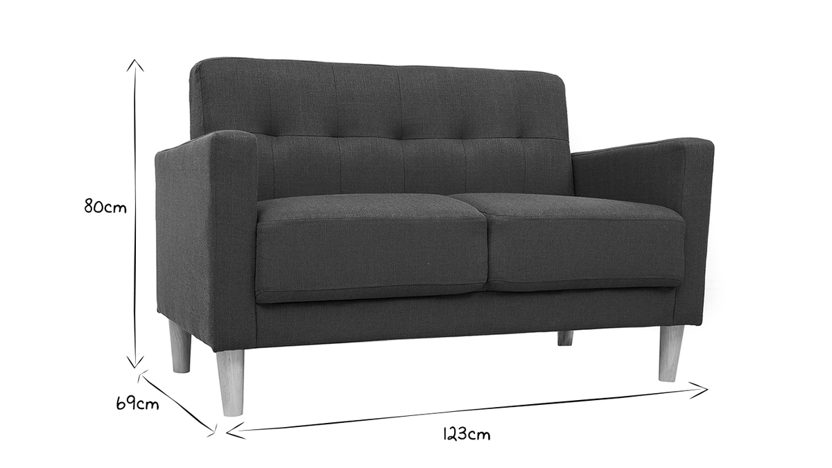 Son piètement en hévéa massif apporte un côté nature et scandinave en plus de lui conférer une stabilité et un maintien parfait. Son assise épaisse offre un bon confort et promet des soirées agréables et cocooning devant la télévision. Ses petites dimensions sont parfaites pour agrémenter un petit salon ou une chambre. Ce canapé 2 places peut être accompagné de fauteuils scandinaves assortis.