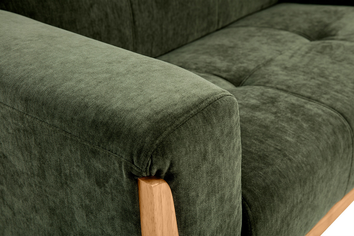 Pour contraster avec les beaux reflets blonds du bois, ce petit canapé 2 places s'habille d'un superbe tissu effet velours vert kaki à la finition capitonnée. Intense et infiniment tendance, ce revêtement apporte un aspect hyper chaleureux à FJORD.