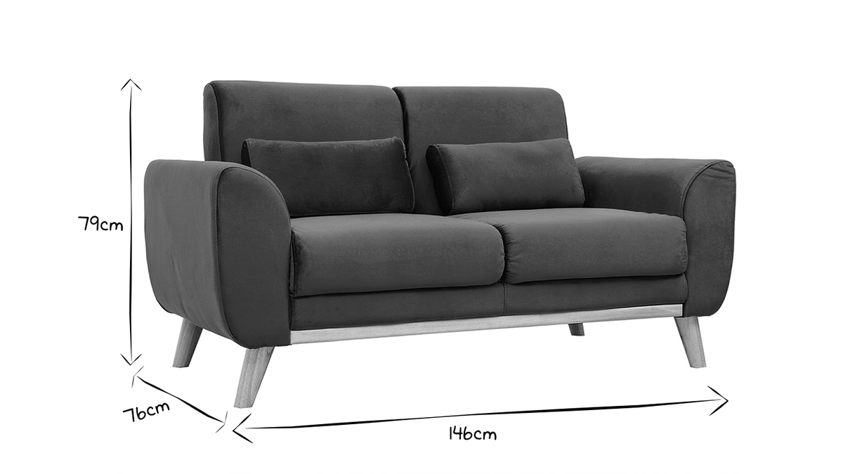 Canapé scandinave 2 places avec dimensions 79x76x146 cm en noir et blanc.